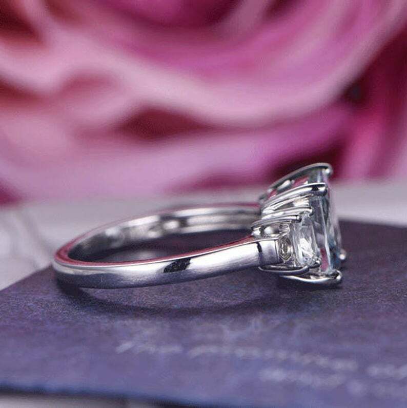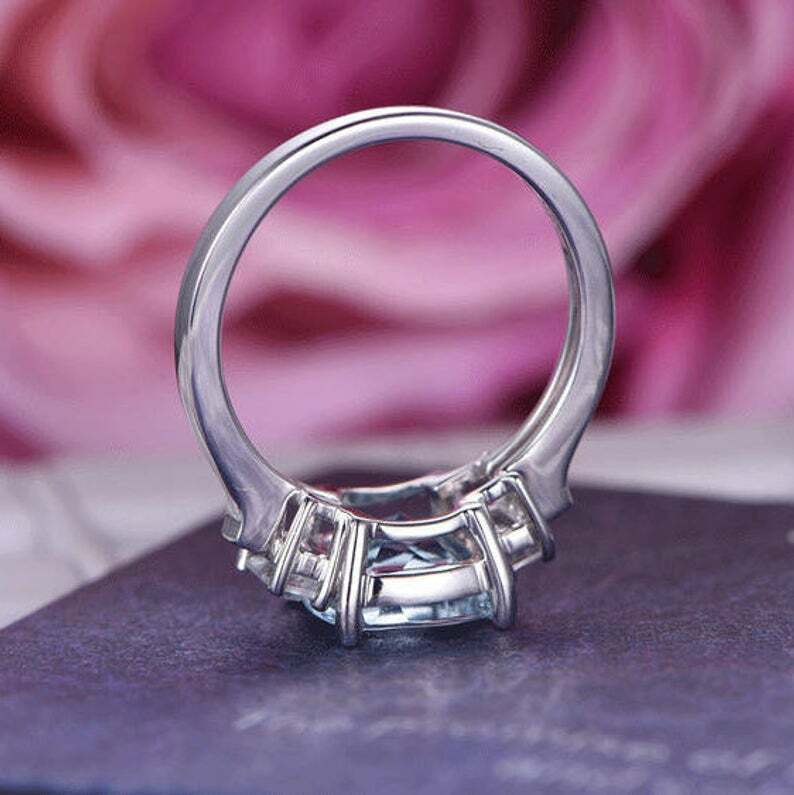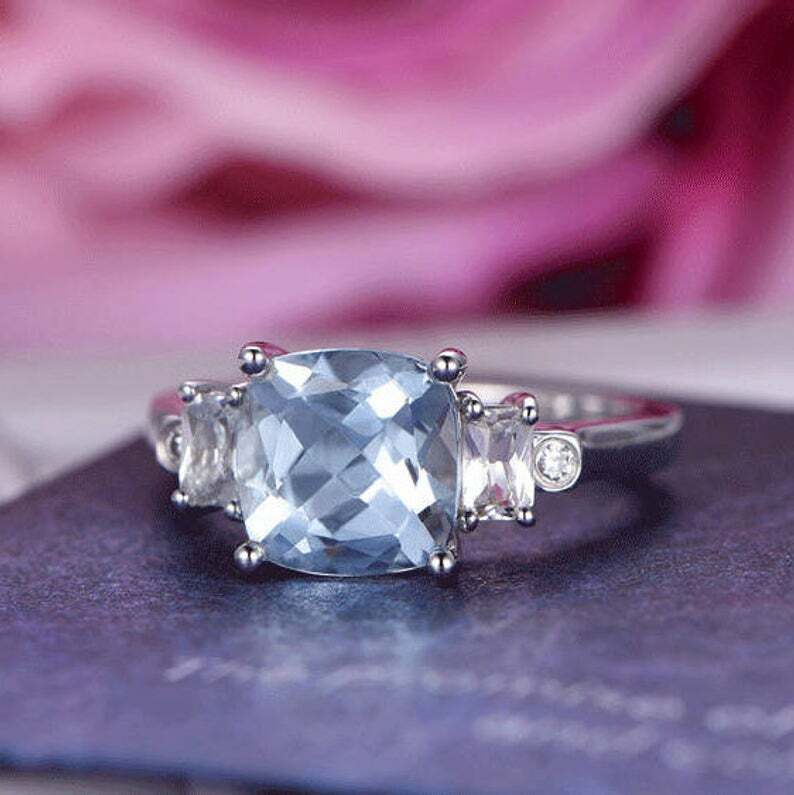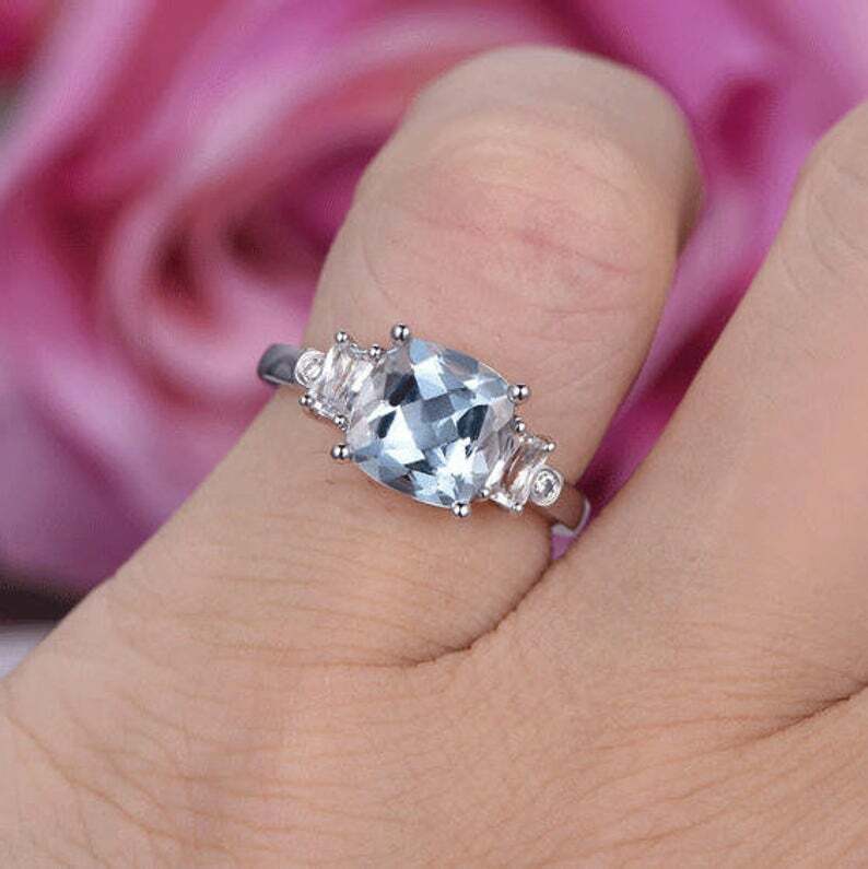 Anillo de compromiso con solitario de aguamarina de talla cojín de 2,20...