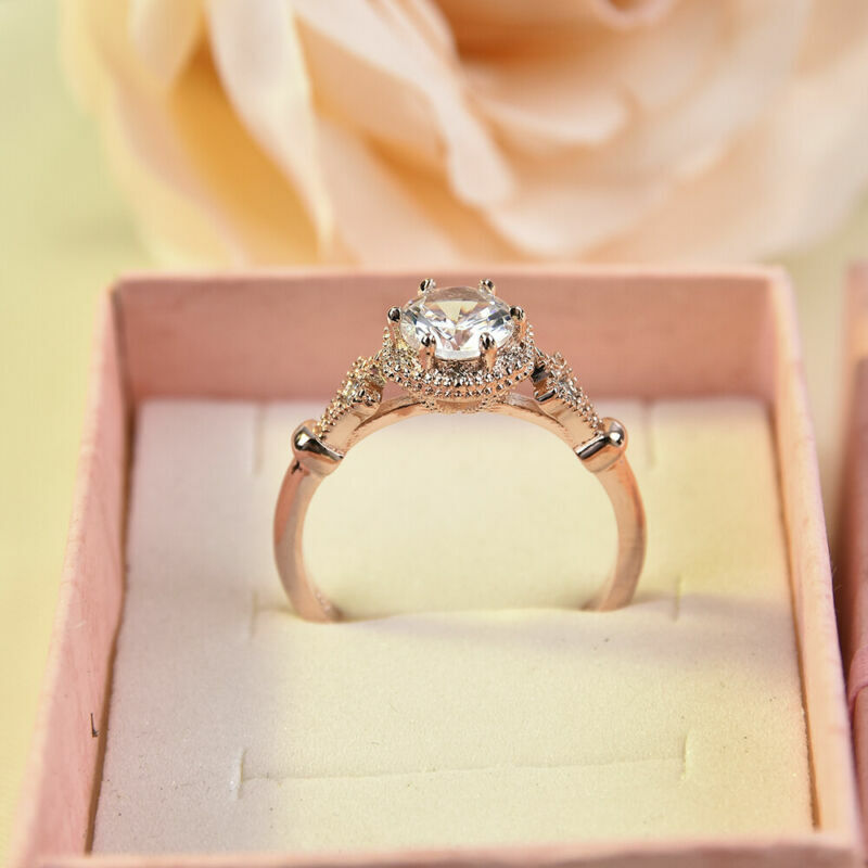 2Ct D/VVS1 Anillo de compromiso con halo de corte hermoso de diamantes...