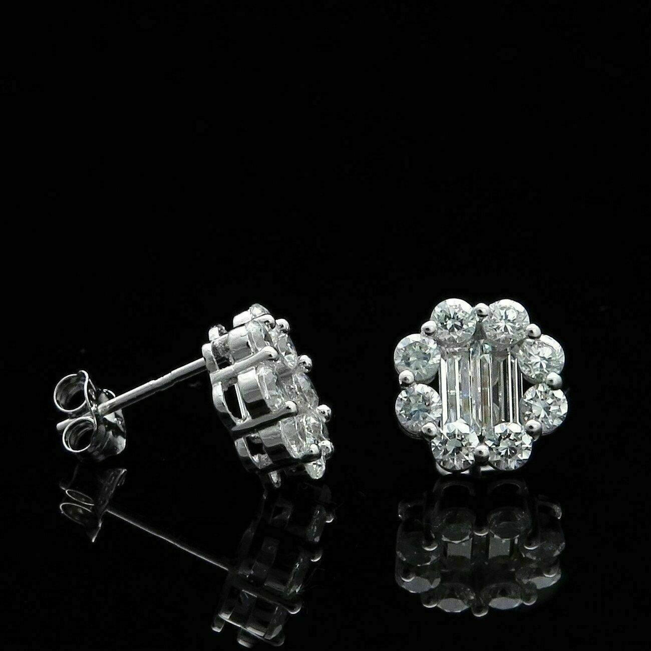 Boucles d'oreilles à tige en diamant taille baguette et ronde de 1,05 ct en...