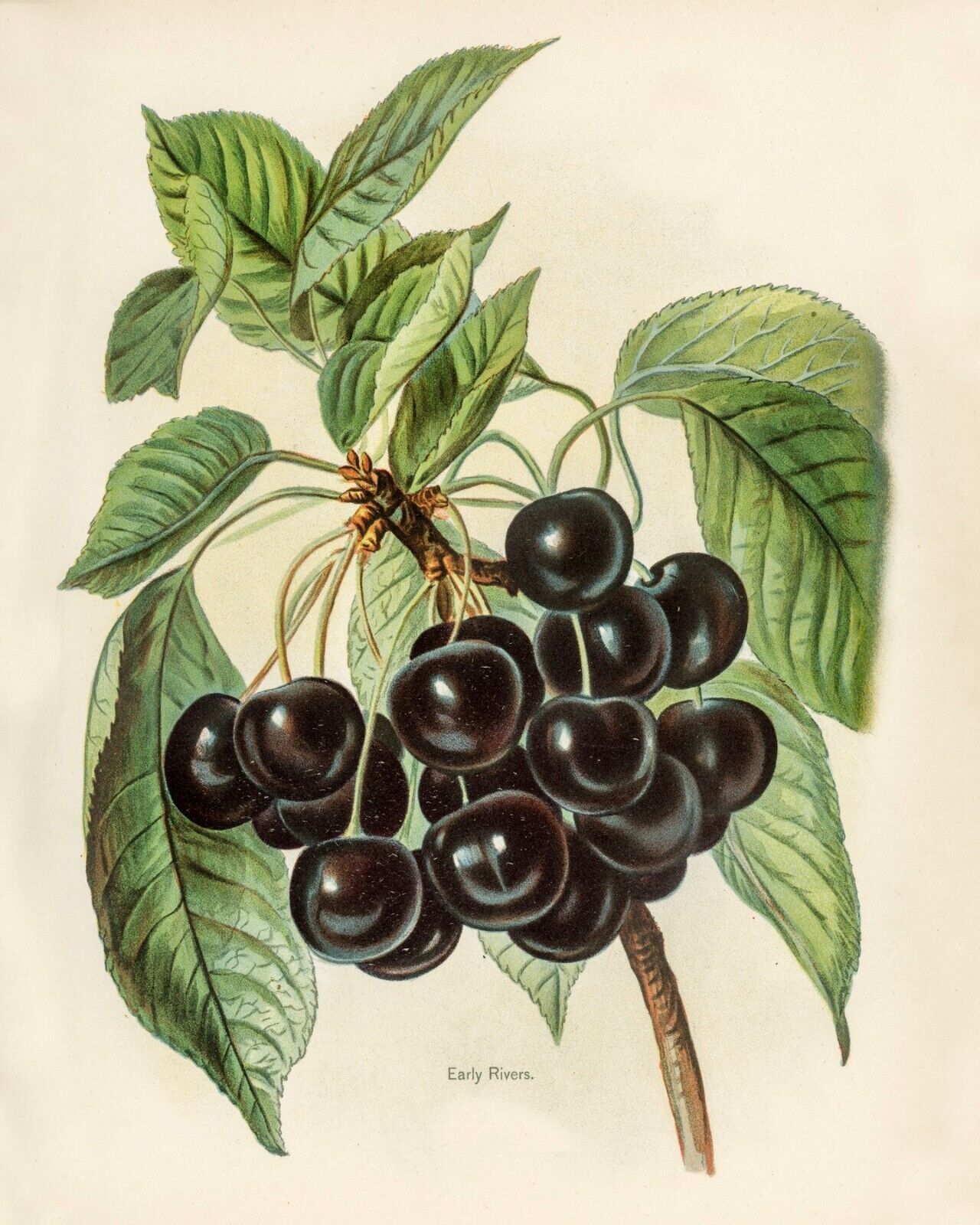 12808.Poster print.Room Wall design.Vintage garden fruit.Cherries.Kitchen decor