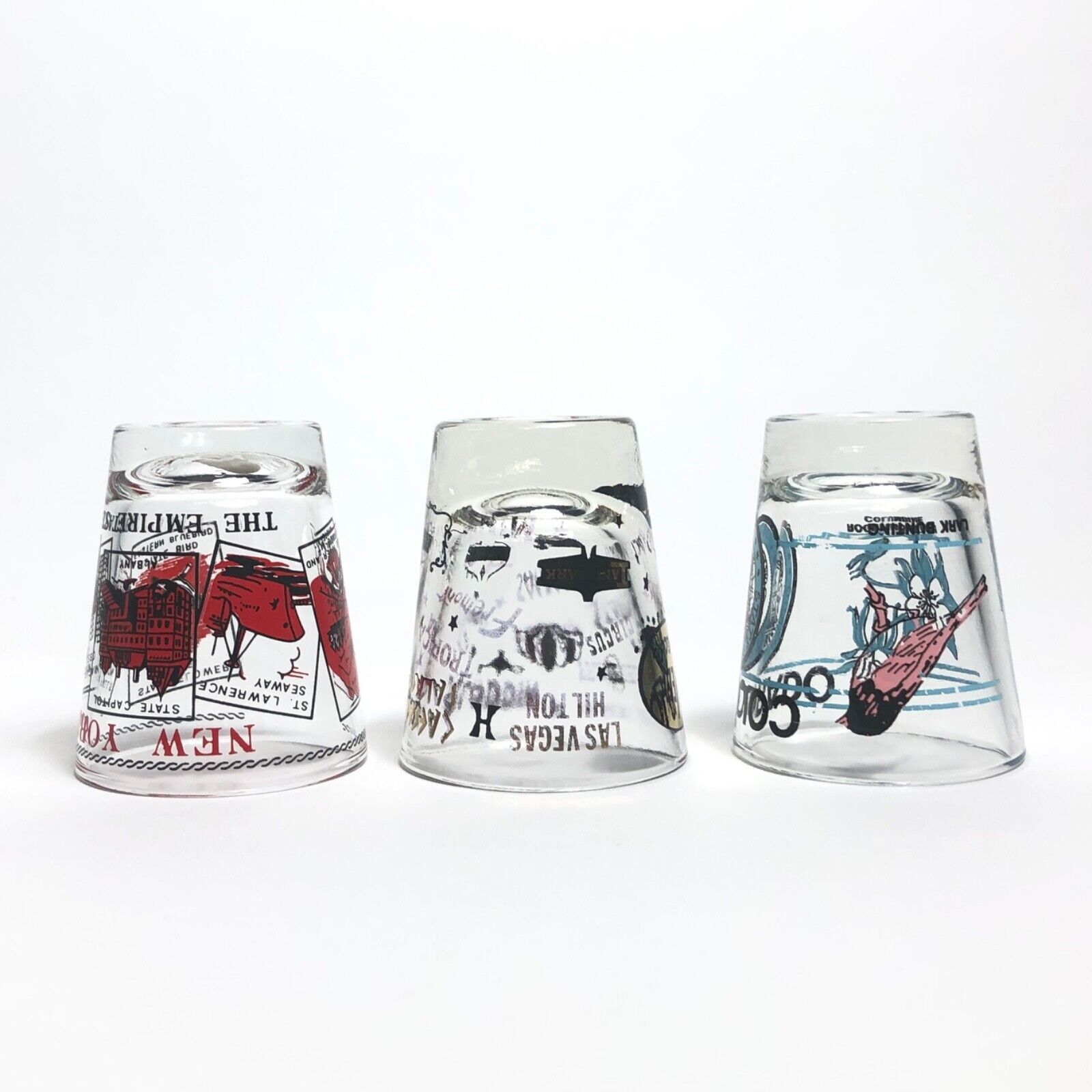 You'll receive 3 awesome vintage travel souvenir shot glasses!