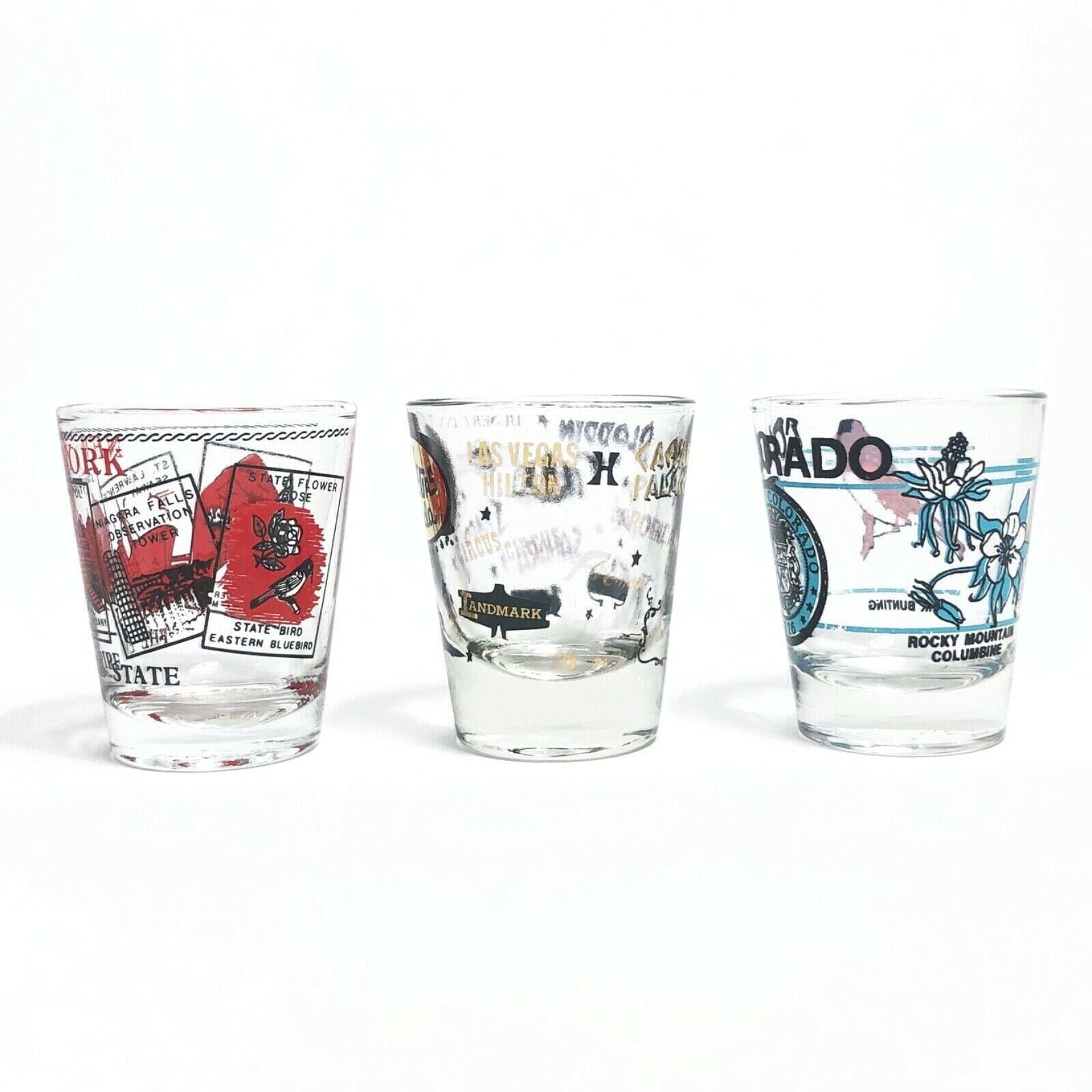 Lot of 3 Shot Glasses MCM Colorado New York and Las Vegas Tavel Souvenir Gift