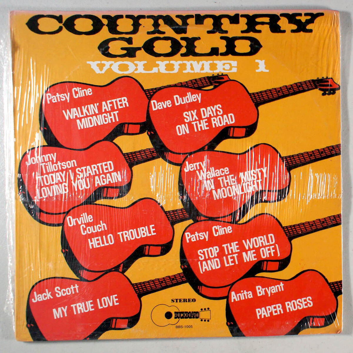 Country Gold, Volume 1 features country music hits by Patsy Cline, Anita Bryant, Dave Dudley, Johnny Tillotson, and more.