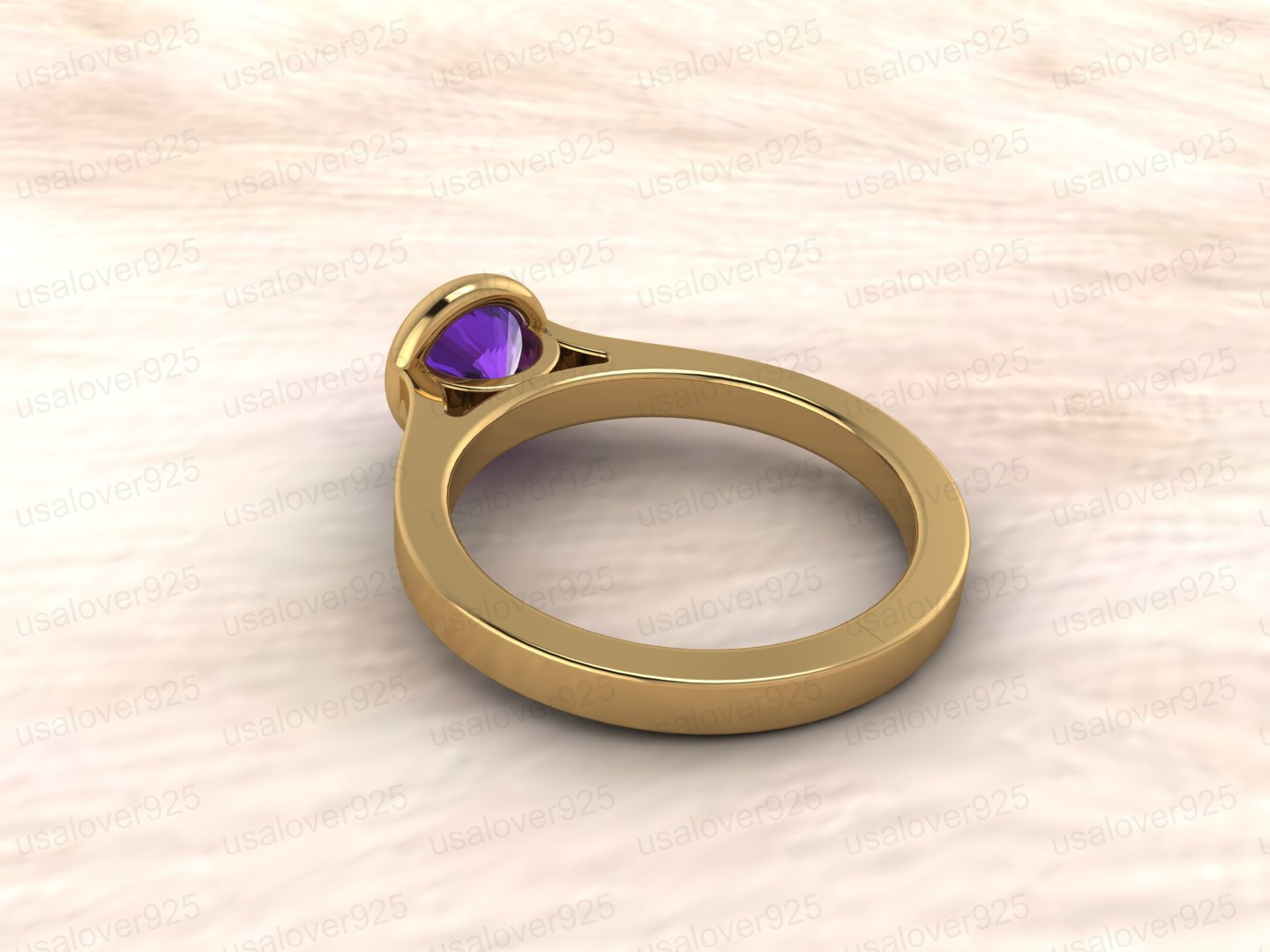 Natural Purple Amethyst Round Gemstone Sterling Silver Women Handmade Ring