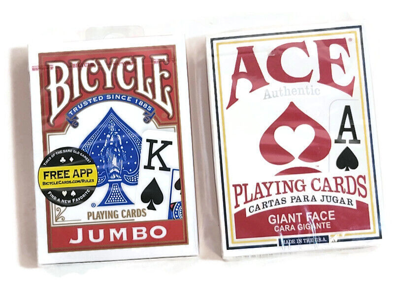 2 Sets Jumbo Giant Face Poker Decks of Playing Cards Bicycle & Ace New