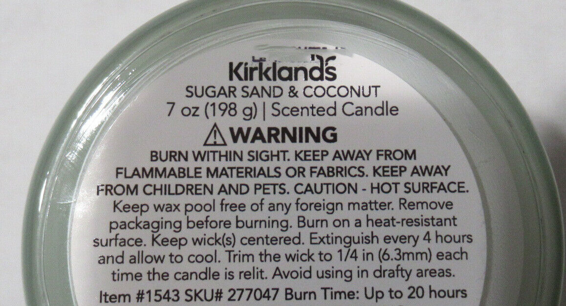 Kirkland's 7 oz Jar Candle up to 20 hrs Natural Wax Blend SUGAR SAND & COCONUT