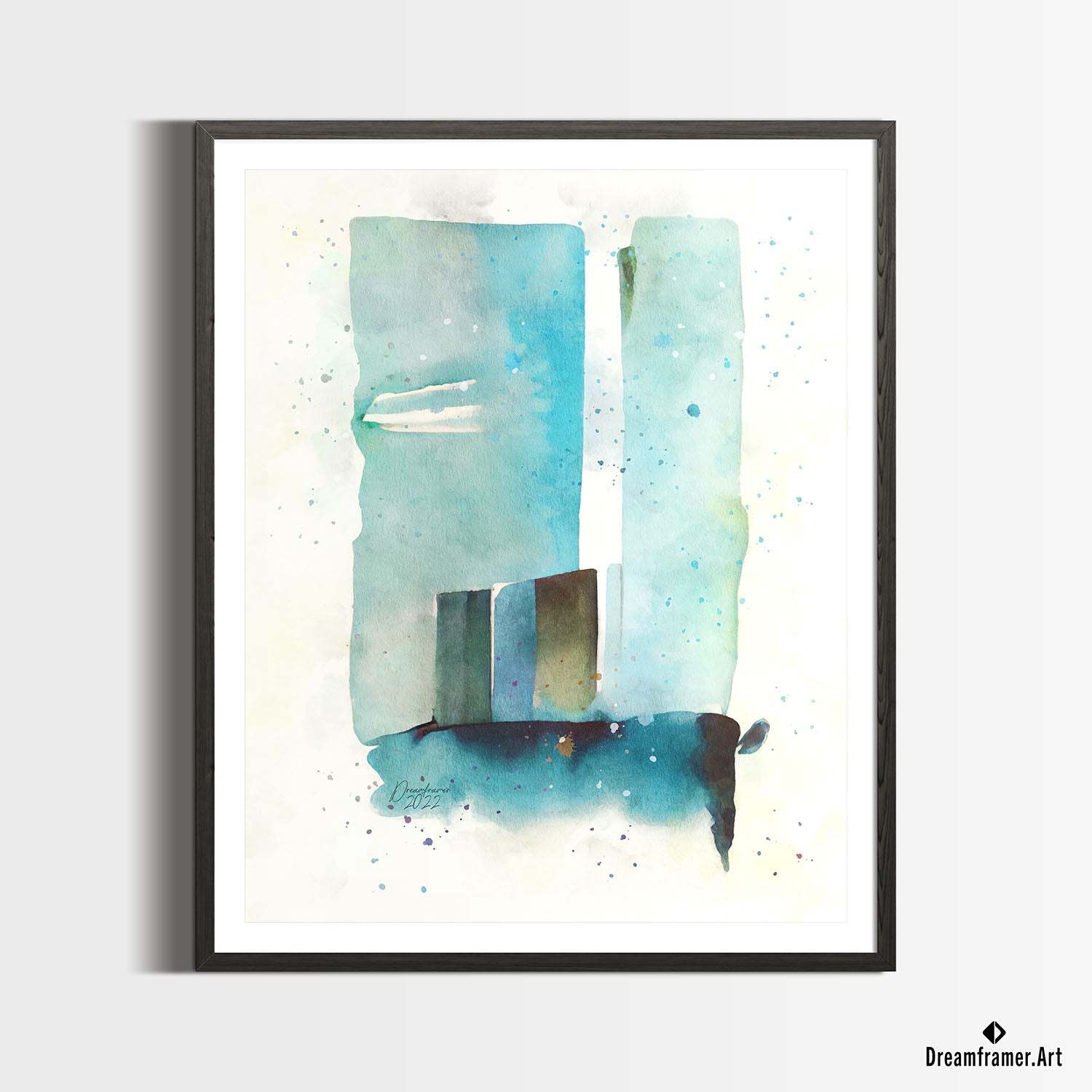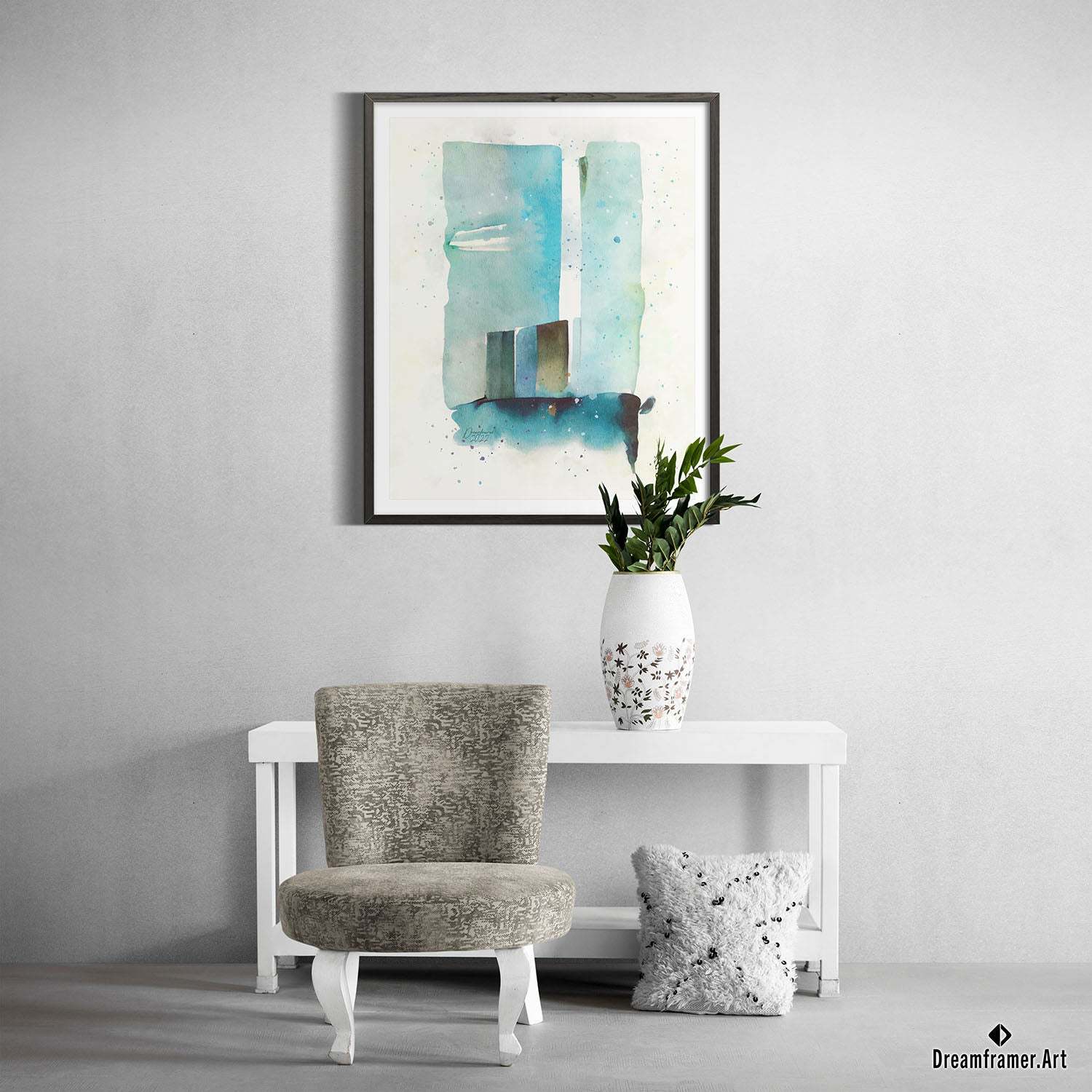 Premium Art Print Blue Abstract in Watercolors, by Dreamframer Art