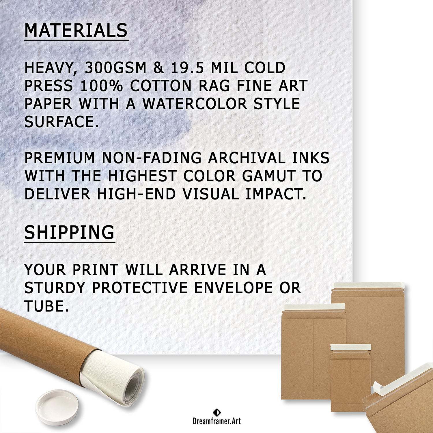 Please visit my FAQ section for details on print quality, processing time, shipping, returns, and cancelation policy.