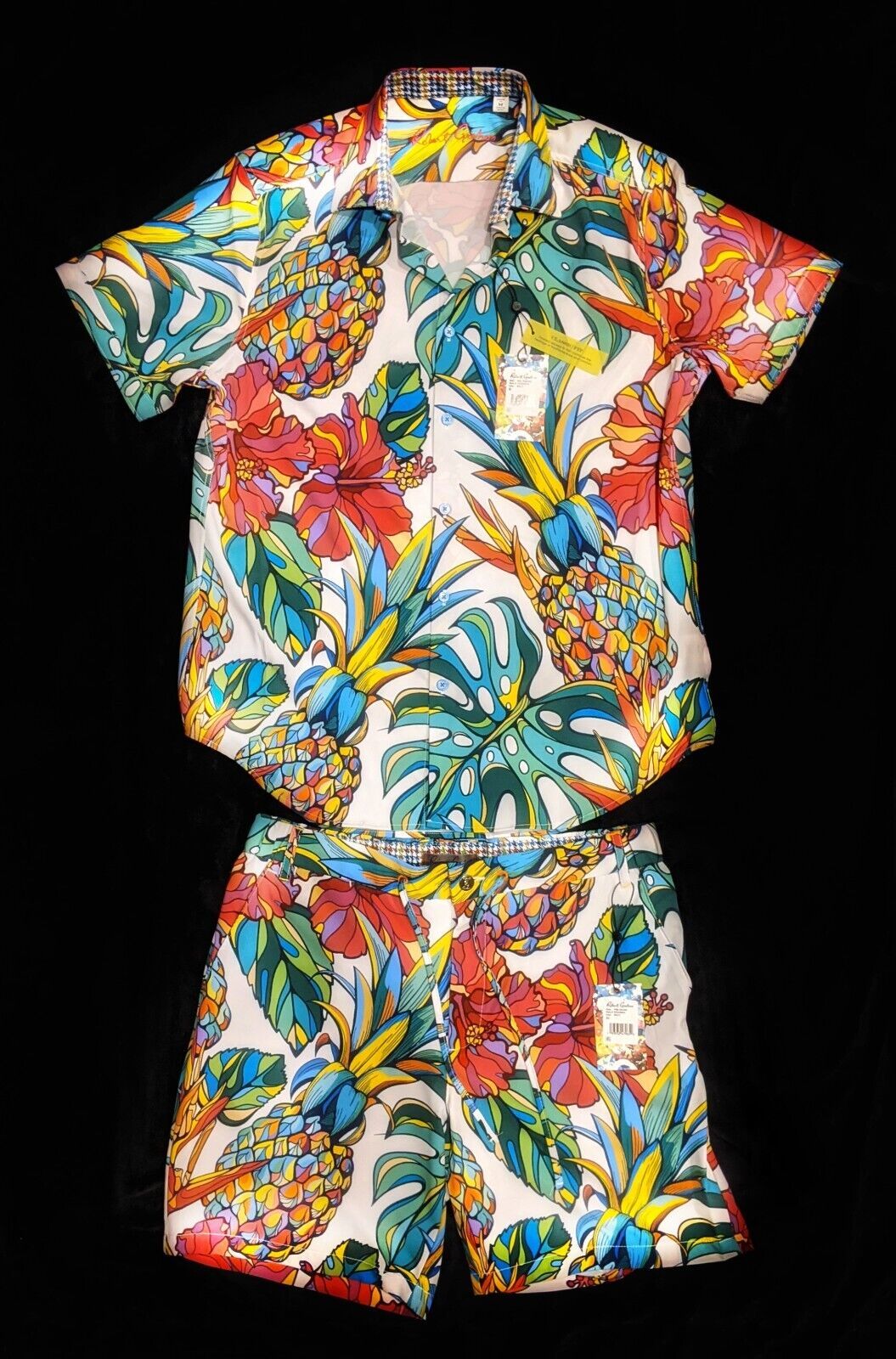 Robert Graham Maui Flavors Short Sleeve Shirt Med Size with Matching Shorts 34"