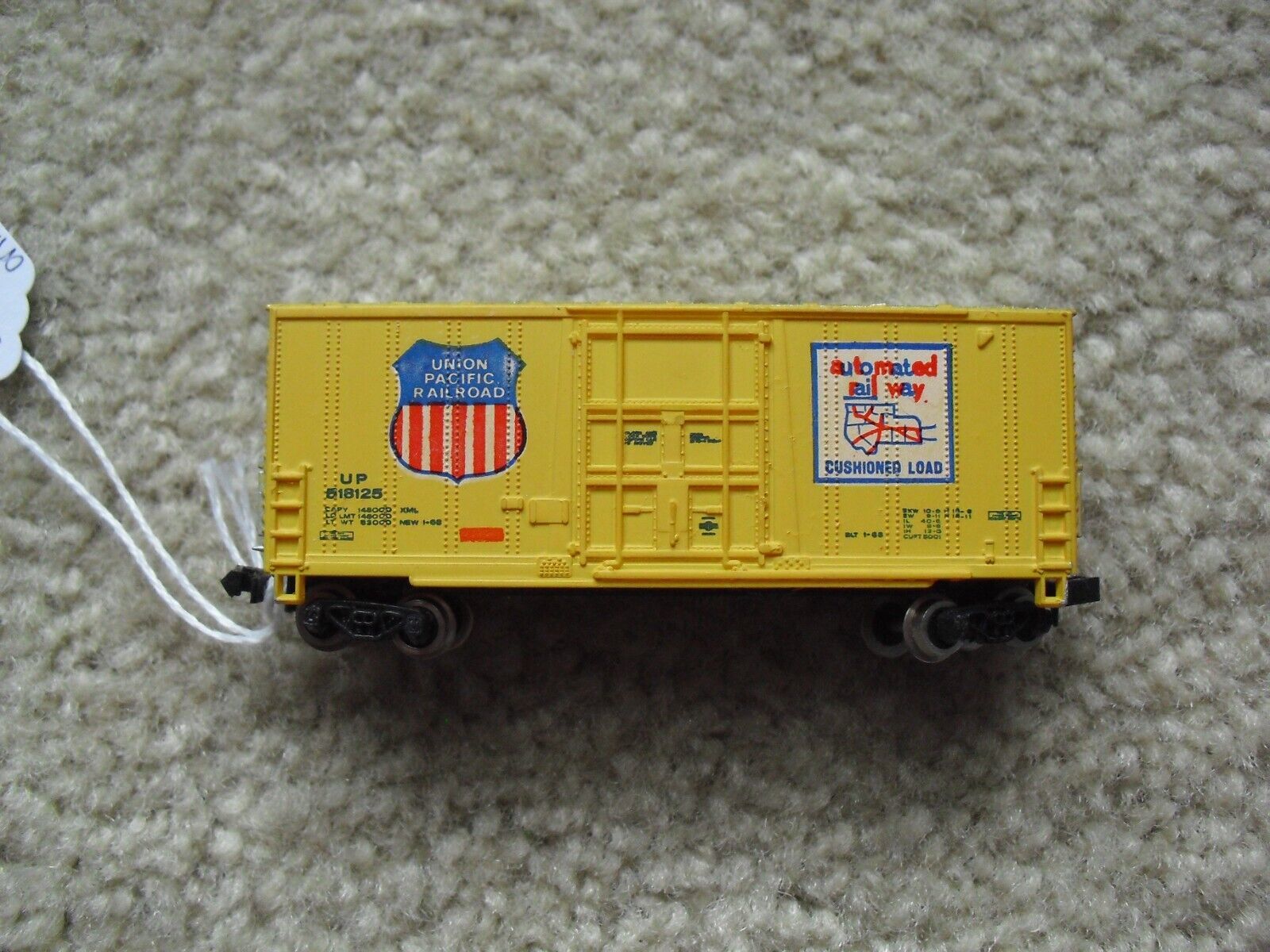 You are bidding on a nice looking, N Scale Bachmann Union Pacific Automated All the Way 518125 hi cube box car in the pictures. 3 1/8 inches long. Great shape, very light use, no issues to note, could use some fine cleaning. Zoom in for details.