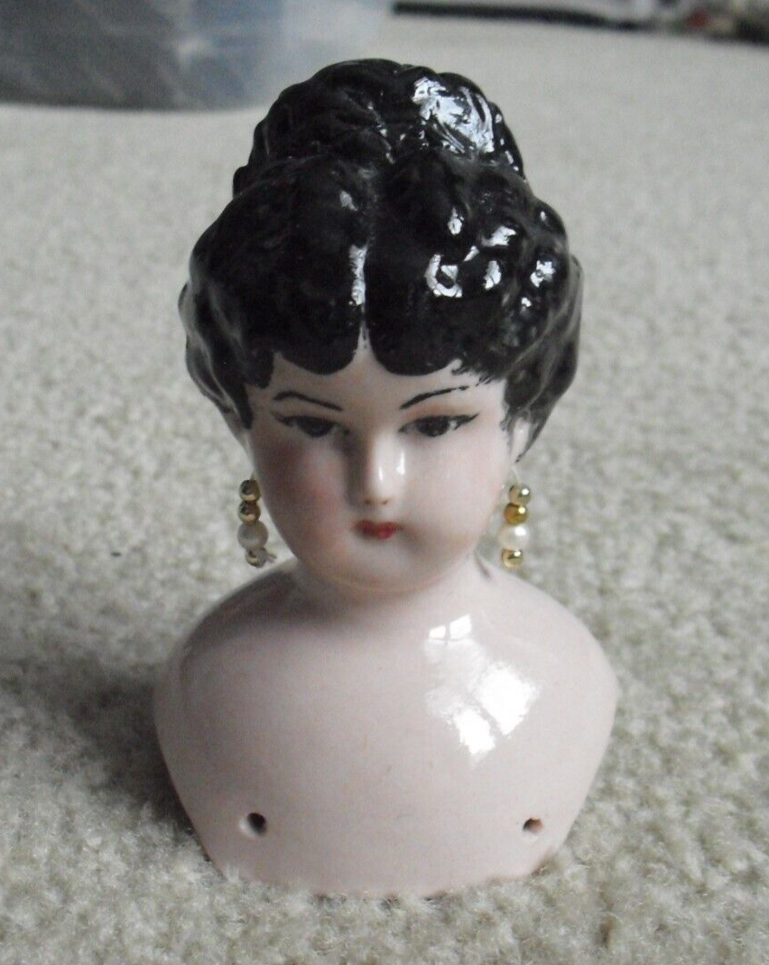 Vintage 1961 Glazed Pink Porcelain Woman Doll Head and Shoulders 3 3/4" Tall