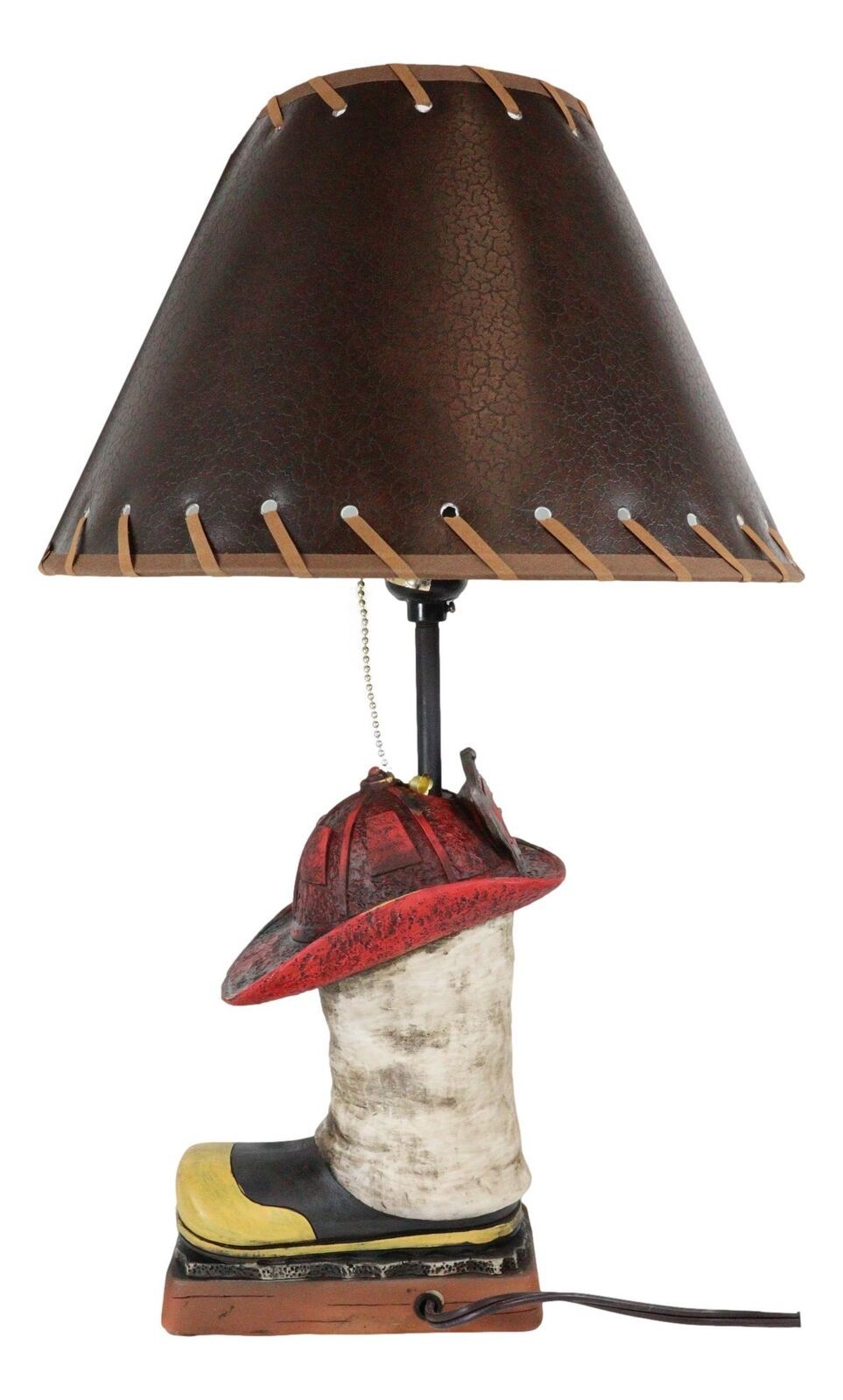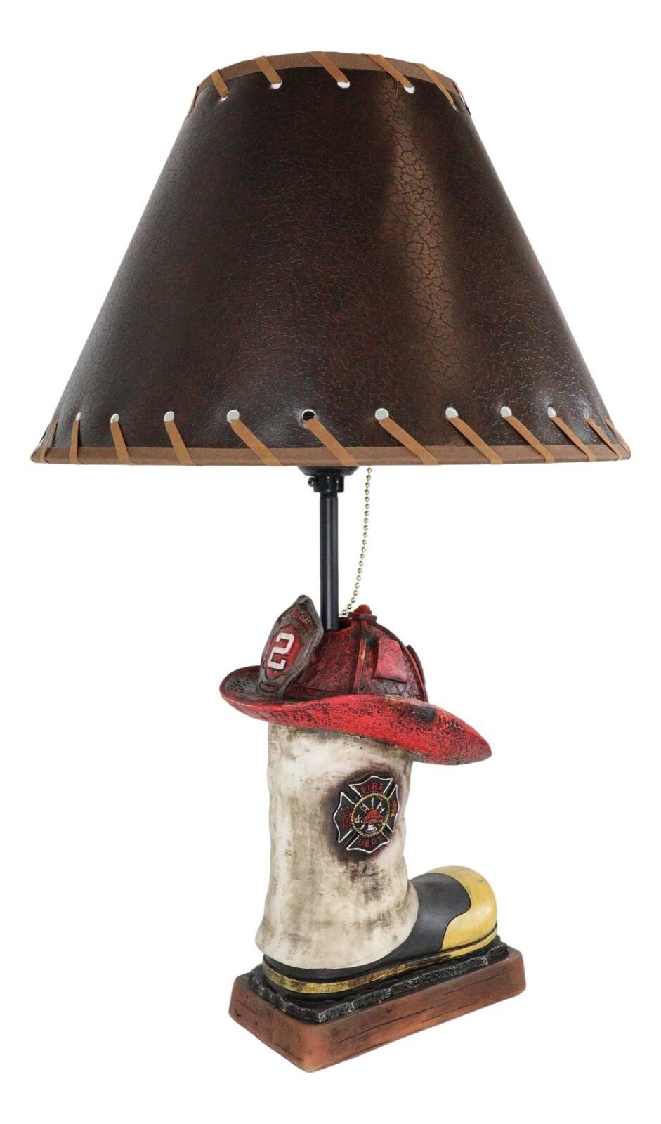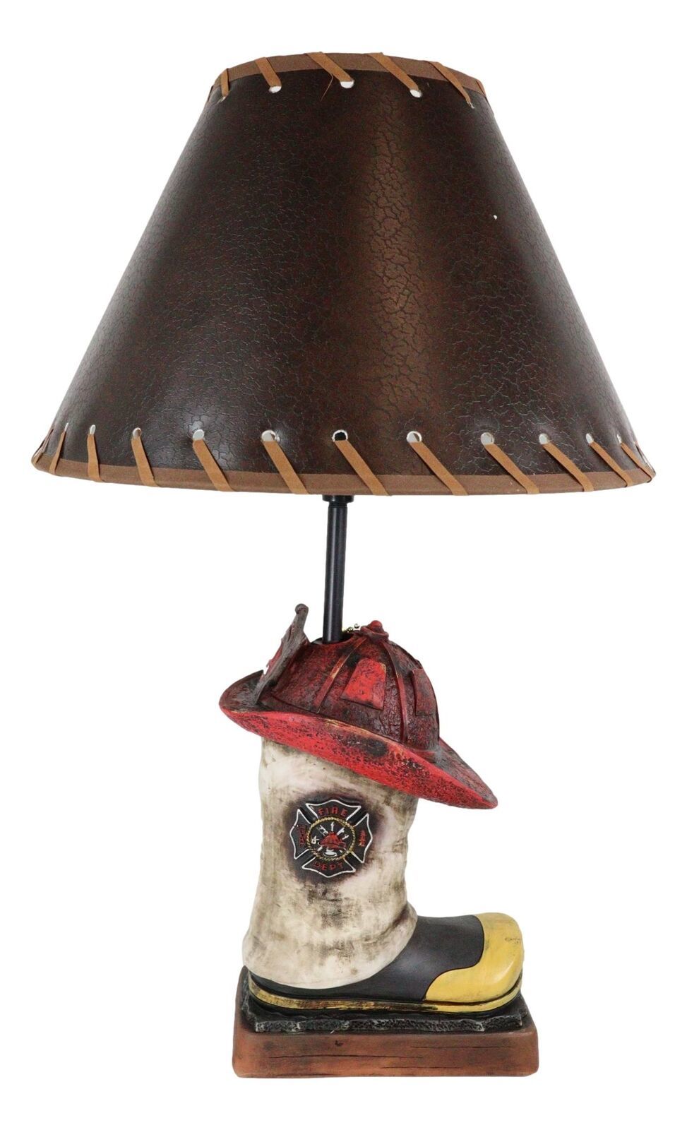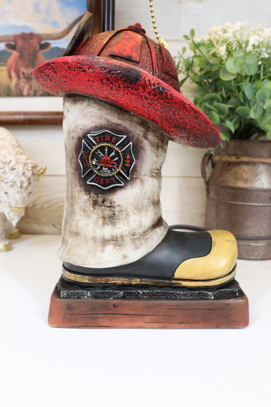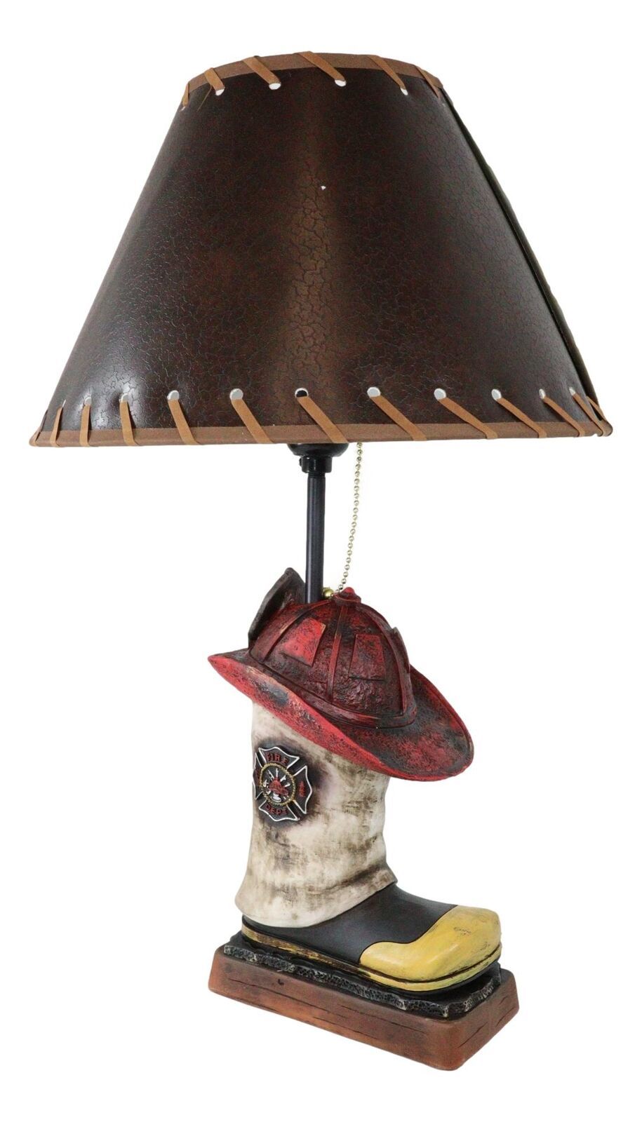 American Hero Fire Fighters Fireman Boot And Helmet Table Lamp With Laced Shade
