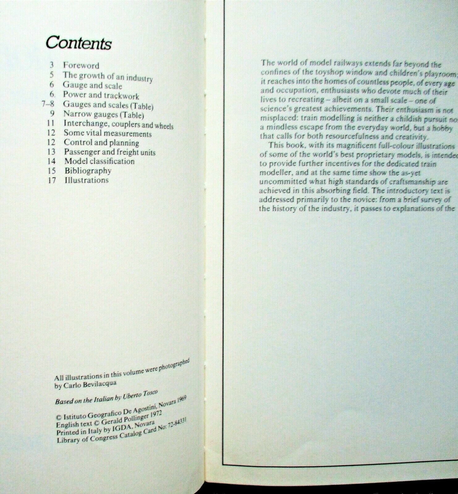 9" x 12" hardcover, No jacket (As Issued) titled COLOR TREASURY OF MODEL TRAINS published by Crescent Books, copyright 1972. 69 pages, Pictorial boards. 110 color photos of actual models, nice detail, stats and specs. Numerous color plates which provide examples of many different types of equipment and locomotive classification. A must book for the Model Train Collector.