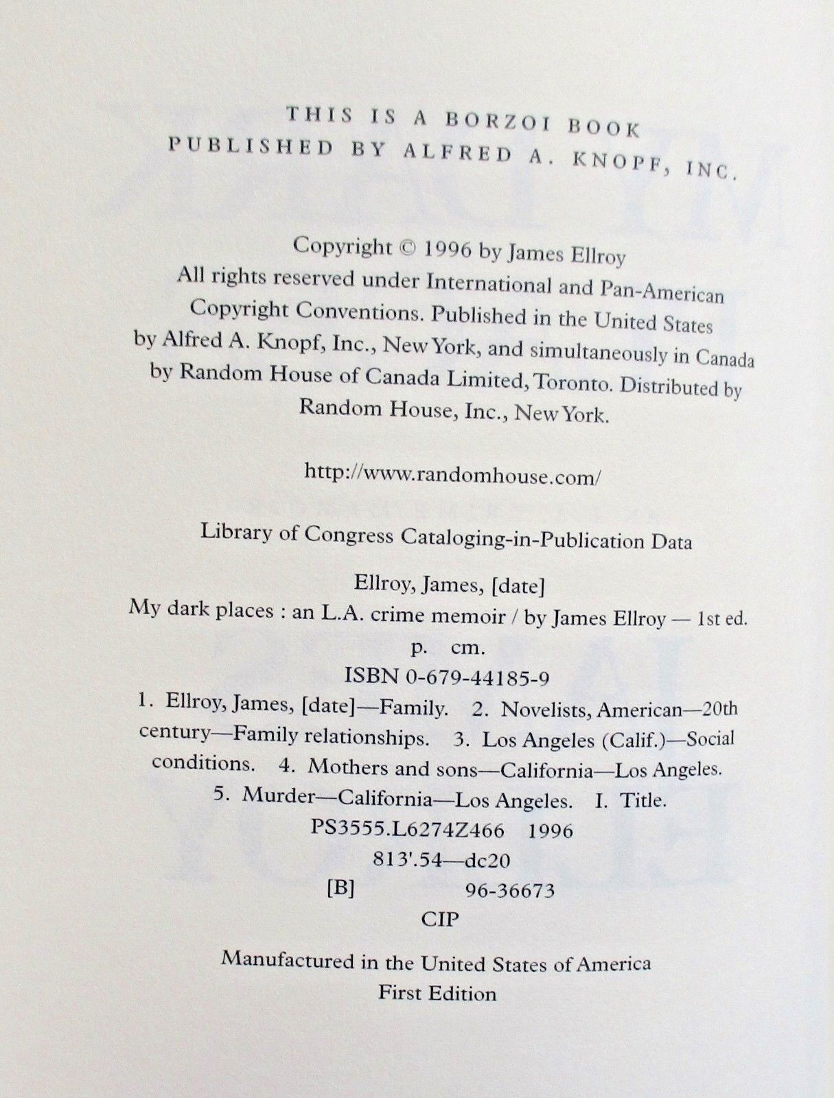 MY DARK PLACES (1996) James Ellroy SIGNED- Knopf HC 1st Edition - True Crime