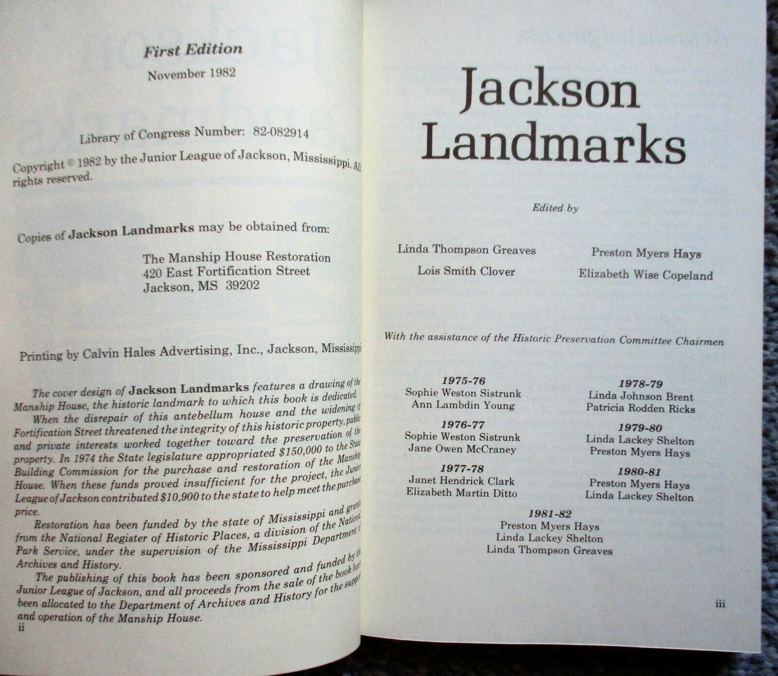 JACKSON LANDMARKS (1982) The Junior League Jackson, Mississippi - ARCHITECTURE