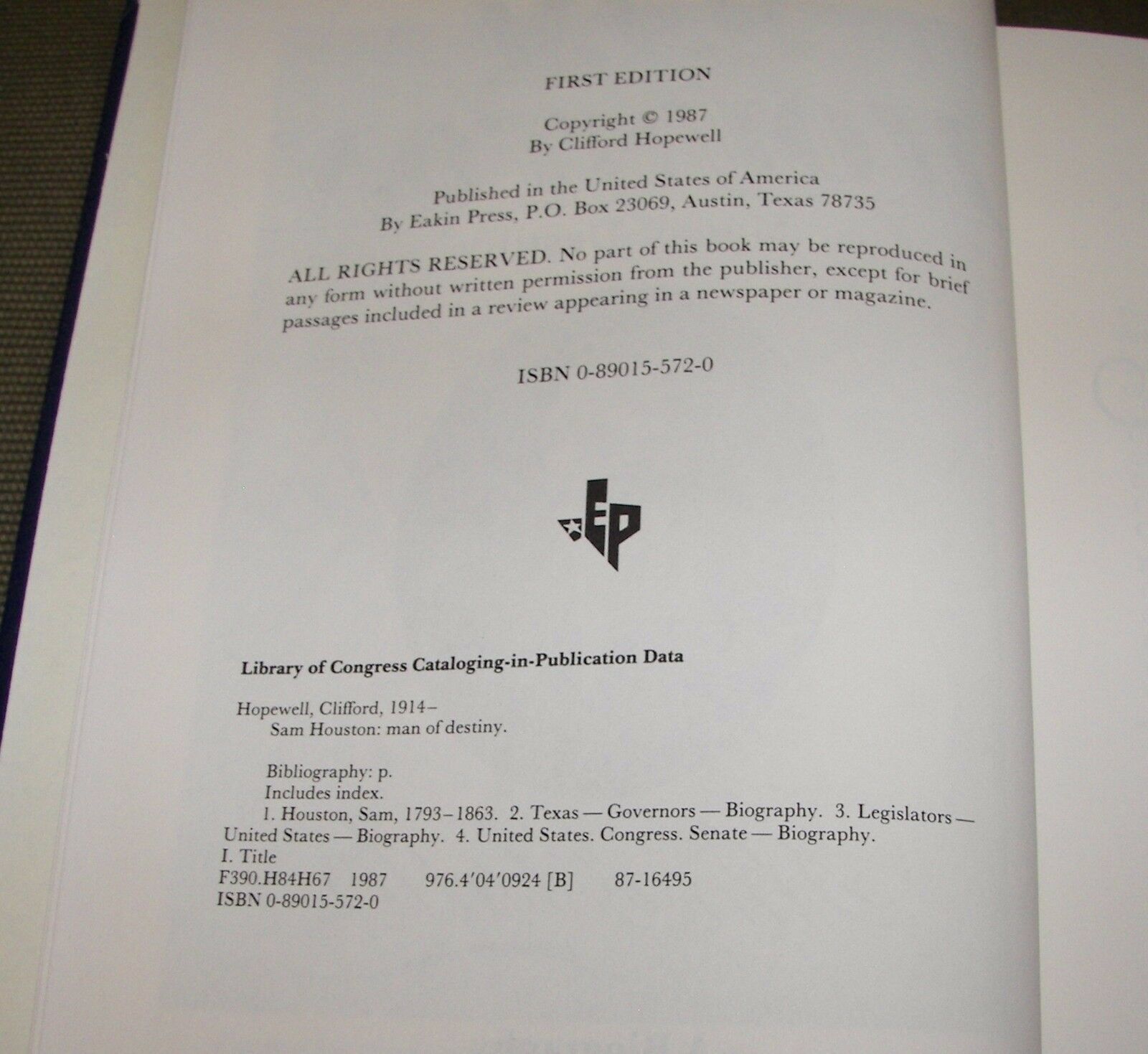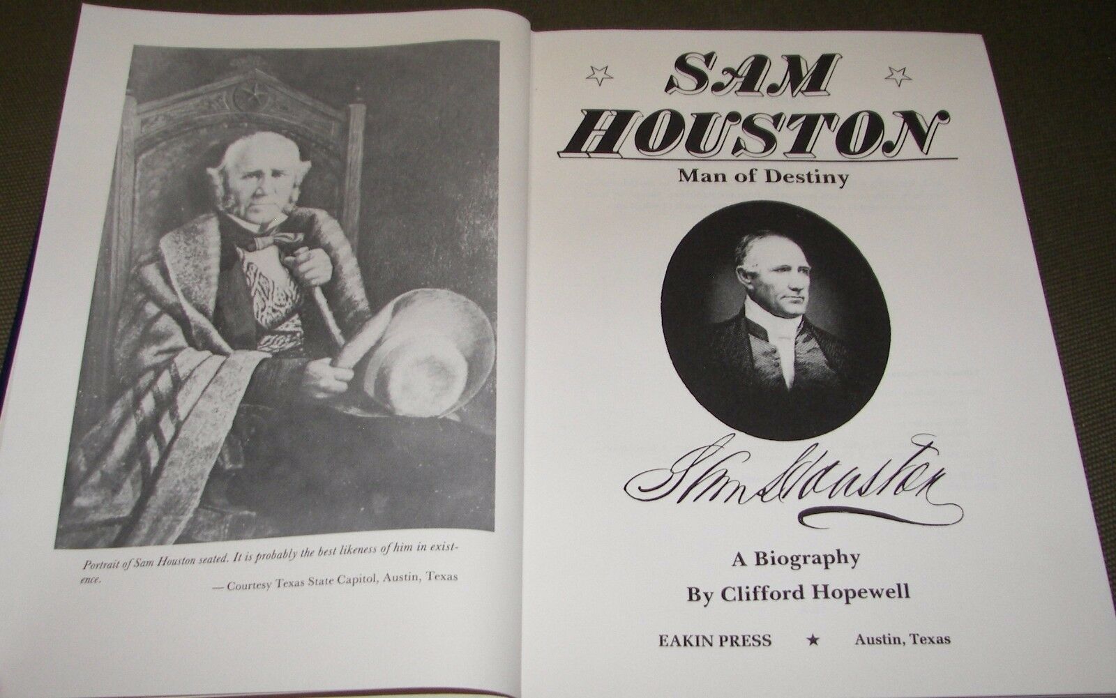 SAM HOUSTON: MAN OF DESTINY (1987) Clifford Hopwell SIGNED Eakin Press HC 1st