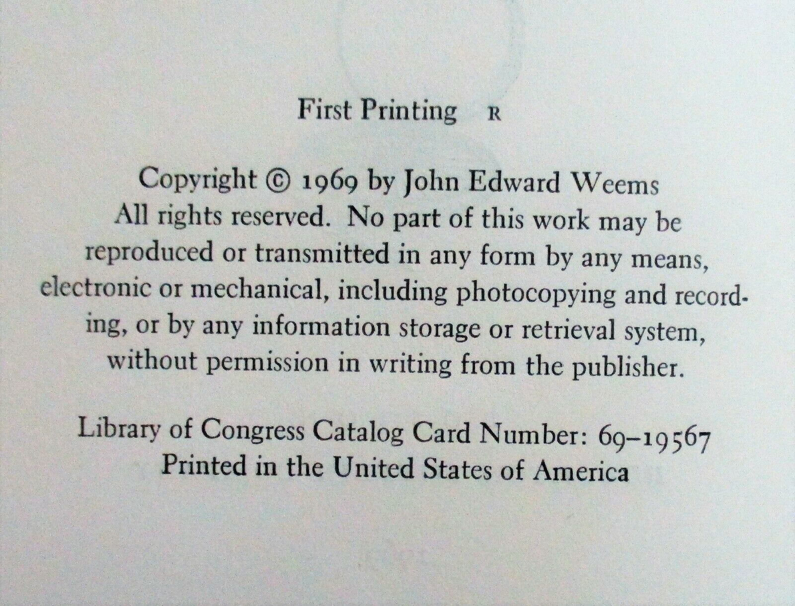 The book is complete and in GOOD - VERY GOOD condition with some overall wear mainly to the dustjacket. The spine of the dustjacket is sunfaded and there is an old sticker stain, some scuffing, and an edge tear on the front cover. On the half-title page is inscribed, "Regards, to Vernon Duty, John Edward Weems."