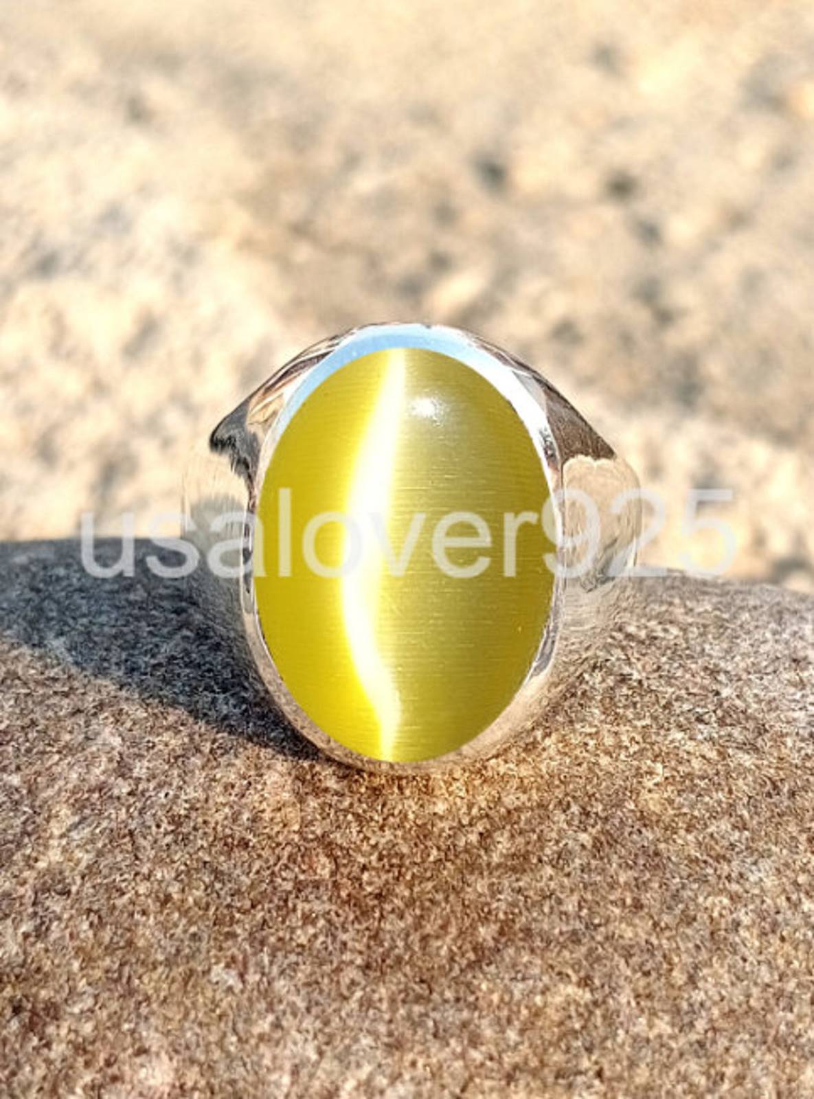 Yellow Cats Eye Men Ring, Sterling Silver Ring, Oval Stone Ring, Gift For Men, Ring For Men, Modern Ring, Hand Crafted Ring, Mens Jewelry