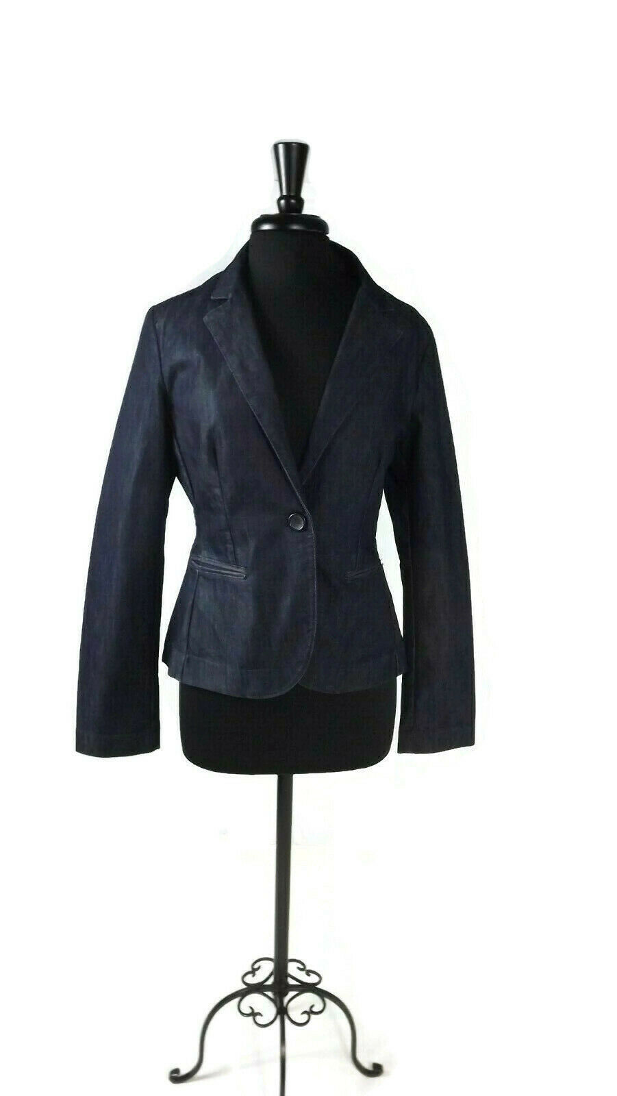 EXPRESS DESIGN STUDIO Womens Dark Denim Jean Jacket Blazer Size 8 New 1