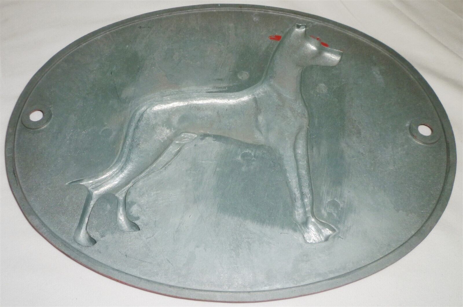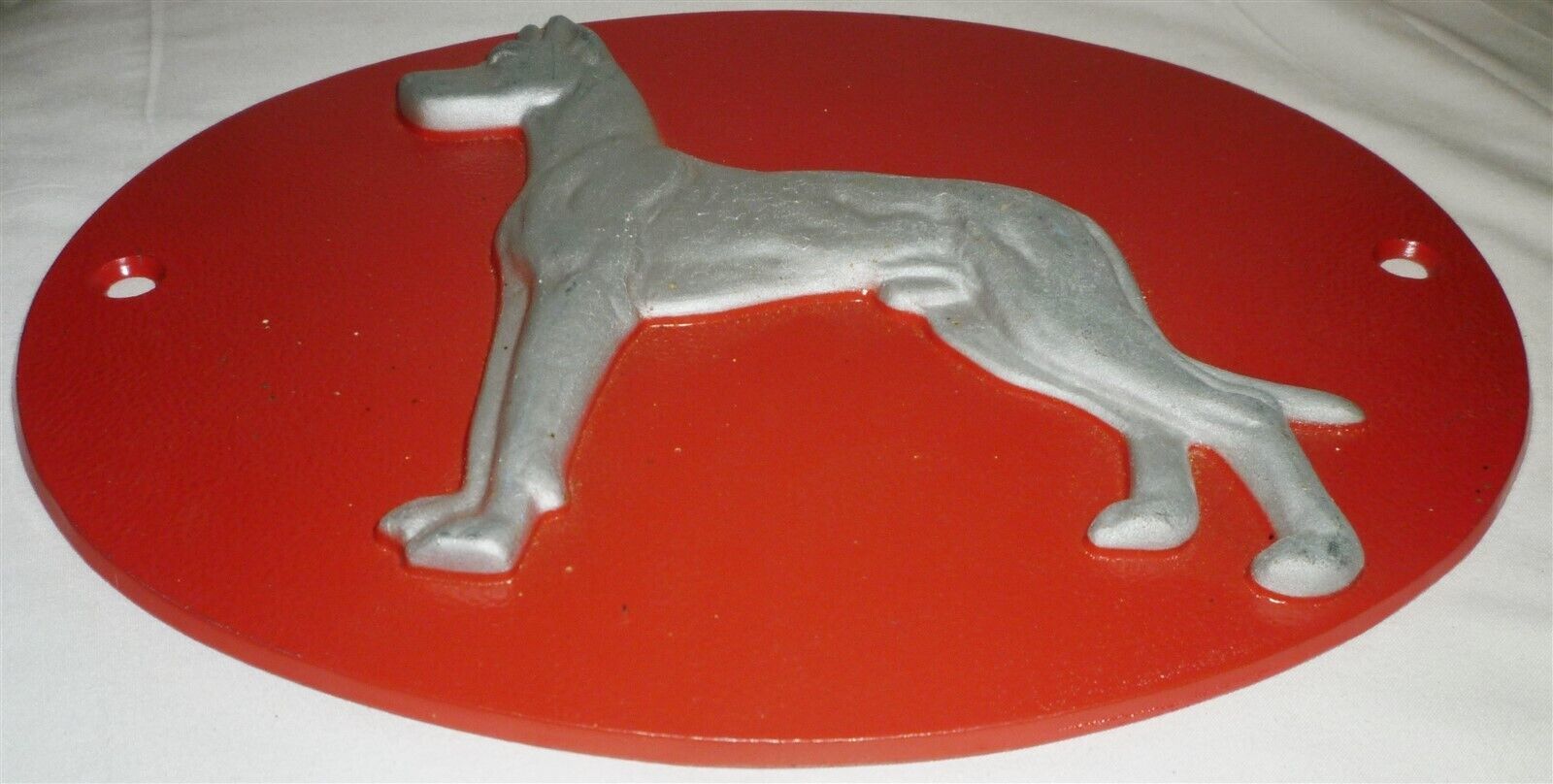 CAST IRON OUTSIDE INSIDE 3D DOG RED OVAL WALL PLAQUE