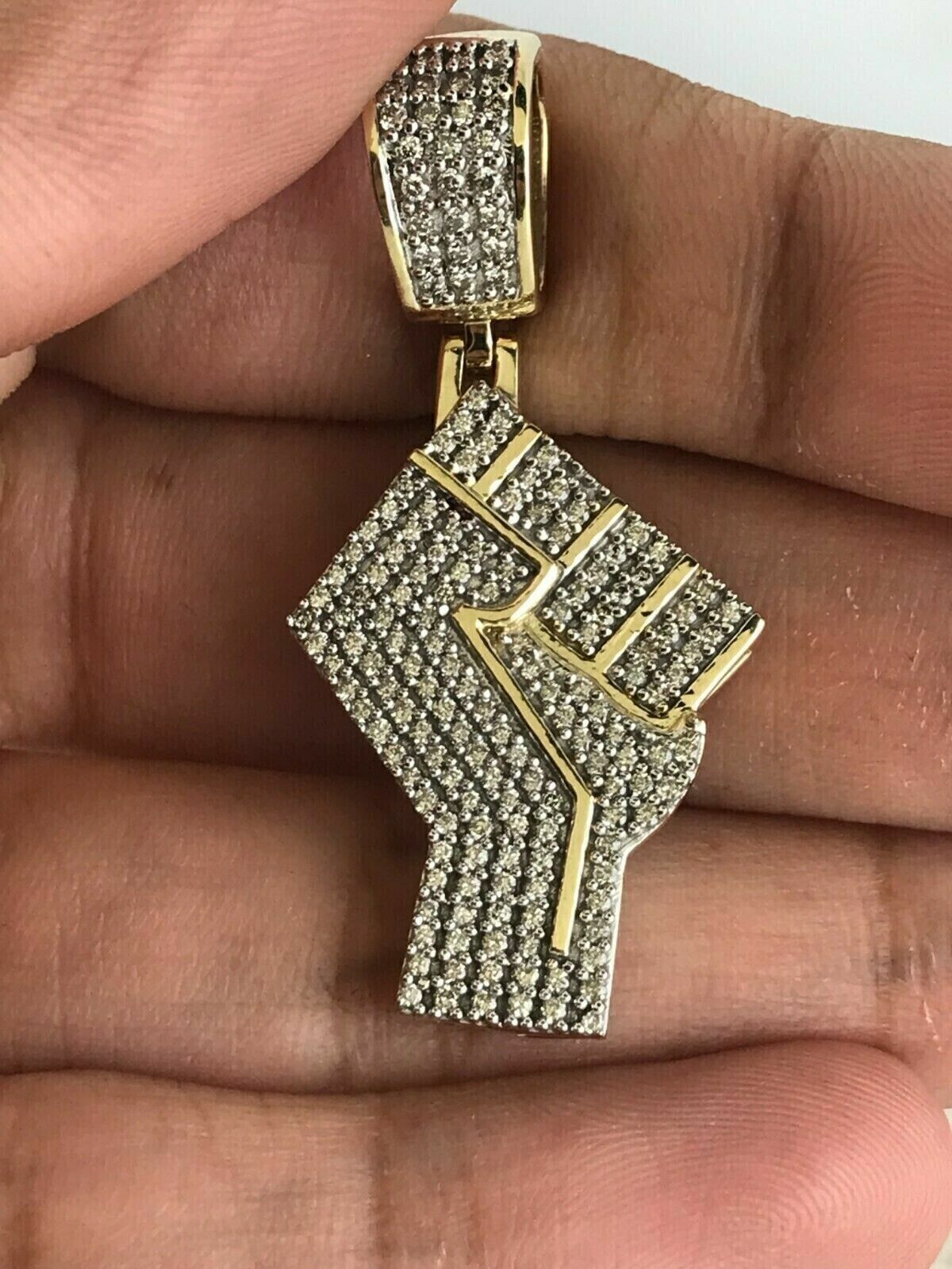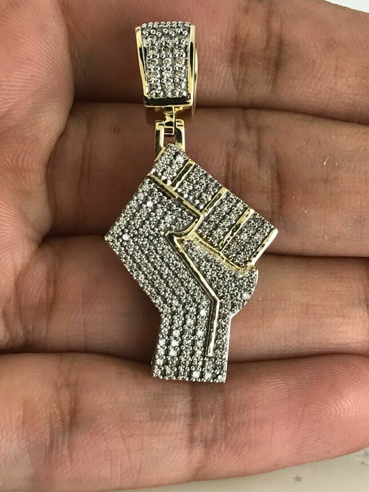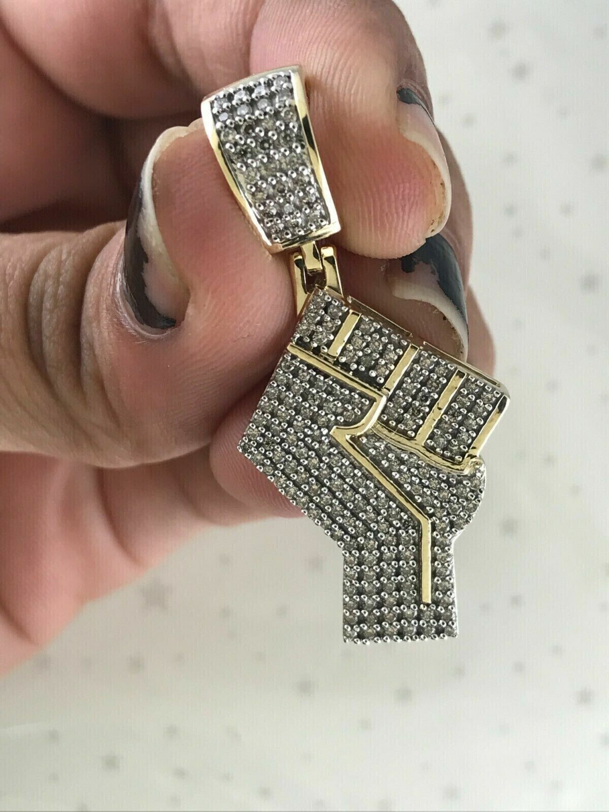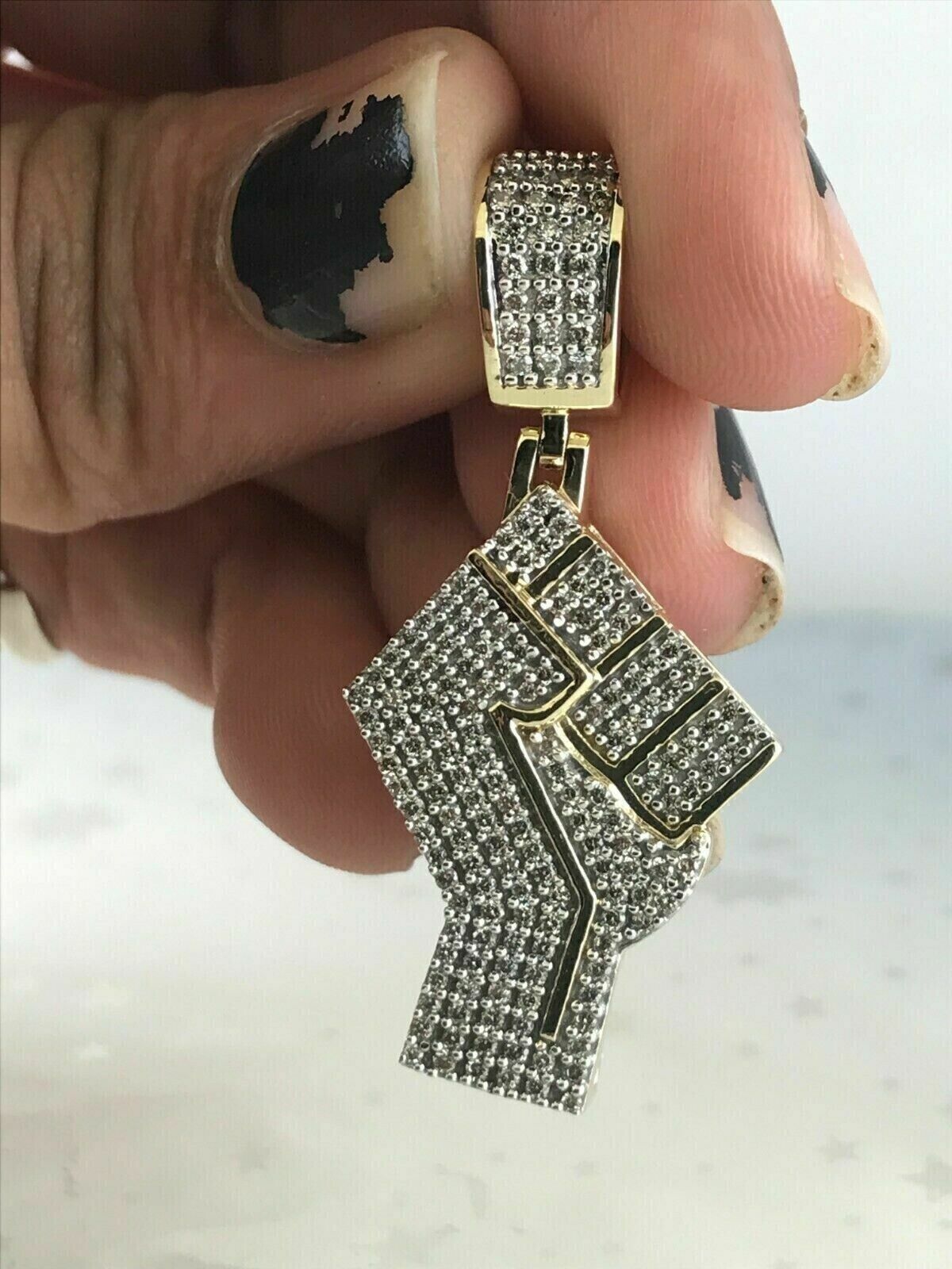 2Ct Round Cut CZ Diamond BLACK LIVES MATTER Pendant 14K Yellow Gold Finish