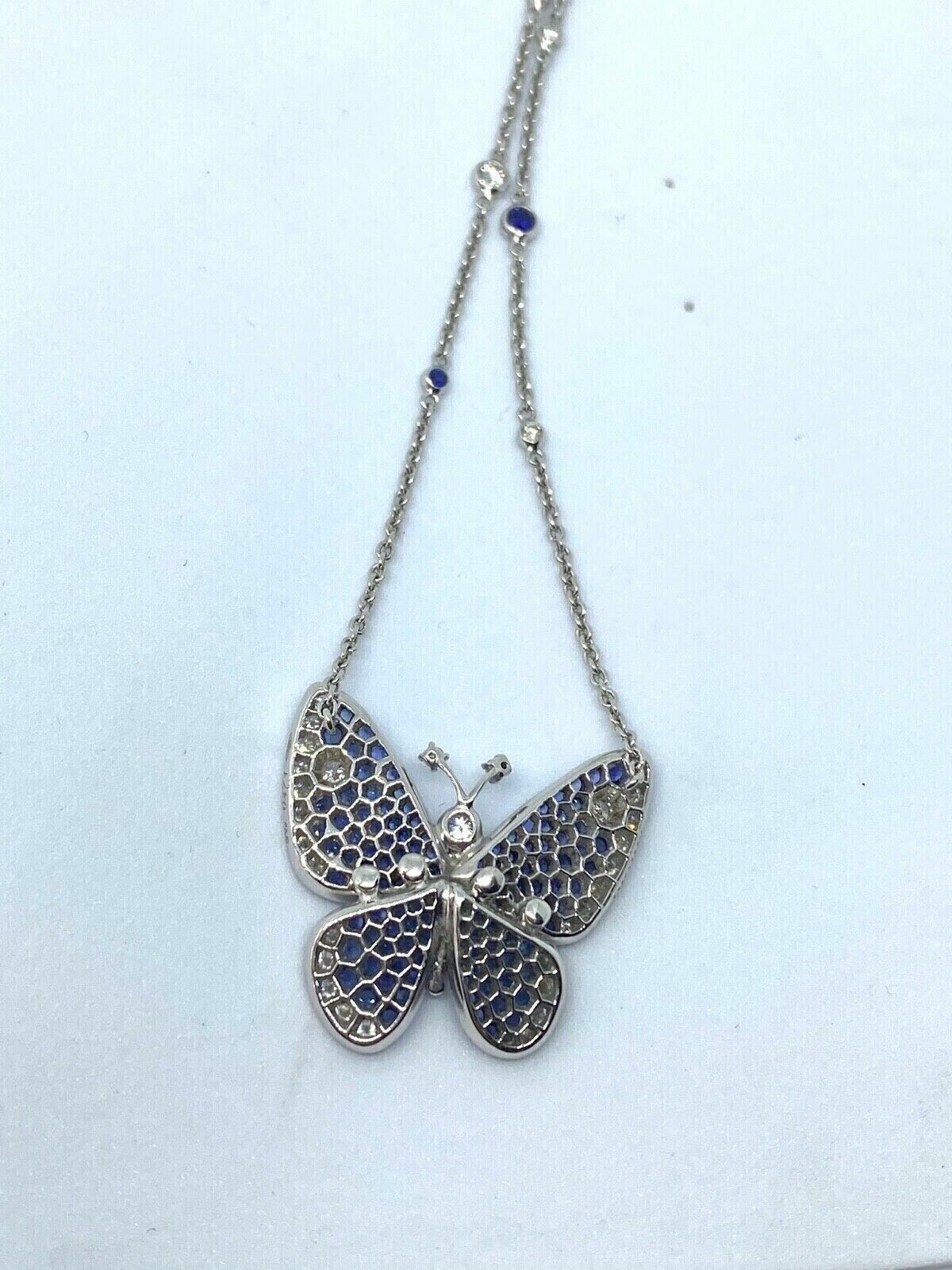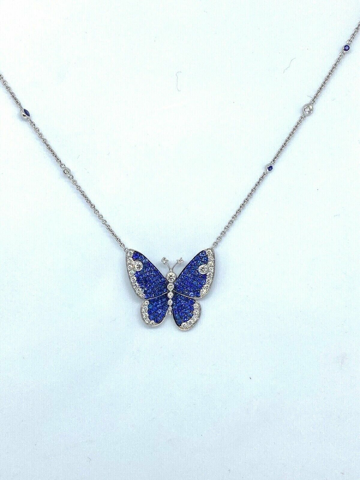 1.50Ct Round Cut CZ Blue Sapphire Butterfly Pendant 14K White Gold Finish 18''
