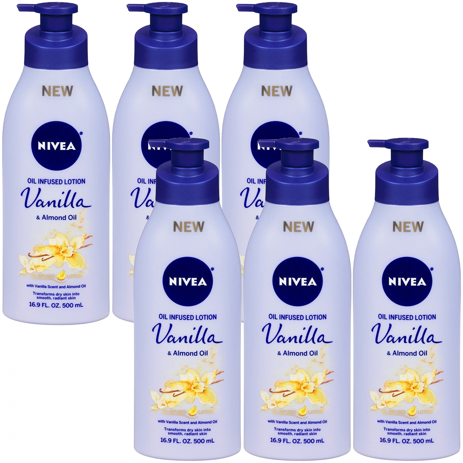 6-Pack New Nivea Lotion Oil-Infused Vanilla/Almond Oil 16.9 Ounce Pump (500ml)