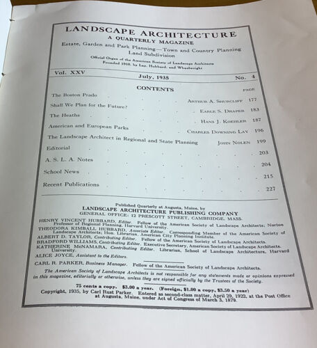 Landscape Architecture V25, #4 July 1935. Ex-lib in good condition. Estate, garden and park planning, town country planning, land subdivision. A quarterly publication. Feel free to email with questions. I do combine shipping on multiple purchases. Have a great day!