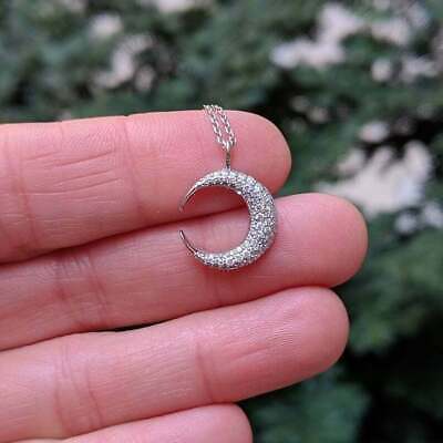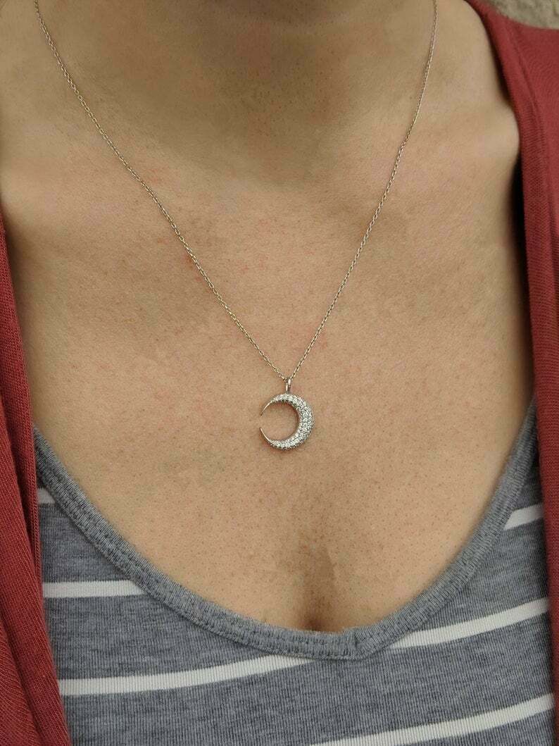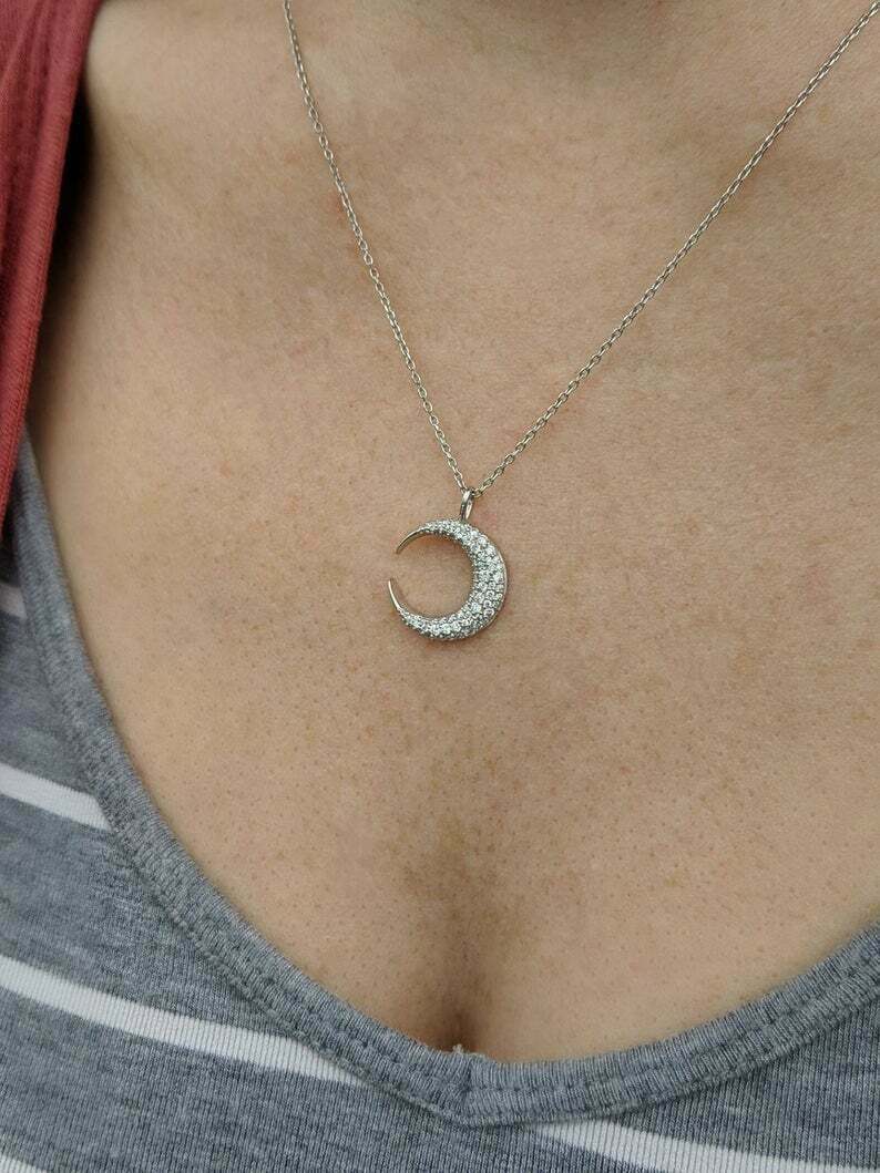 Pendentif croissant de lune diamant rond 0,30 ct en finition or blanc 14 carats
