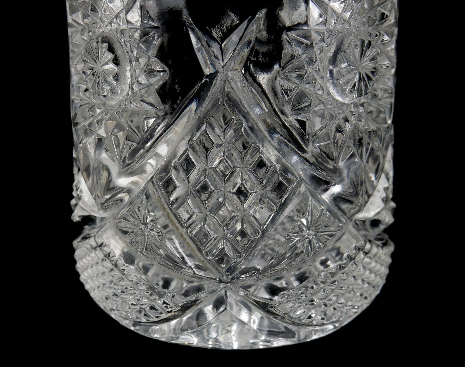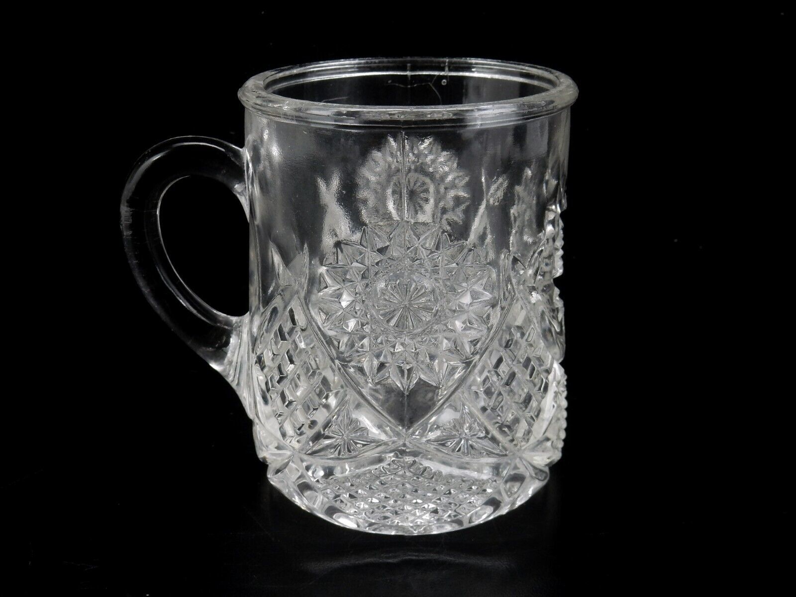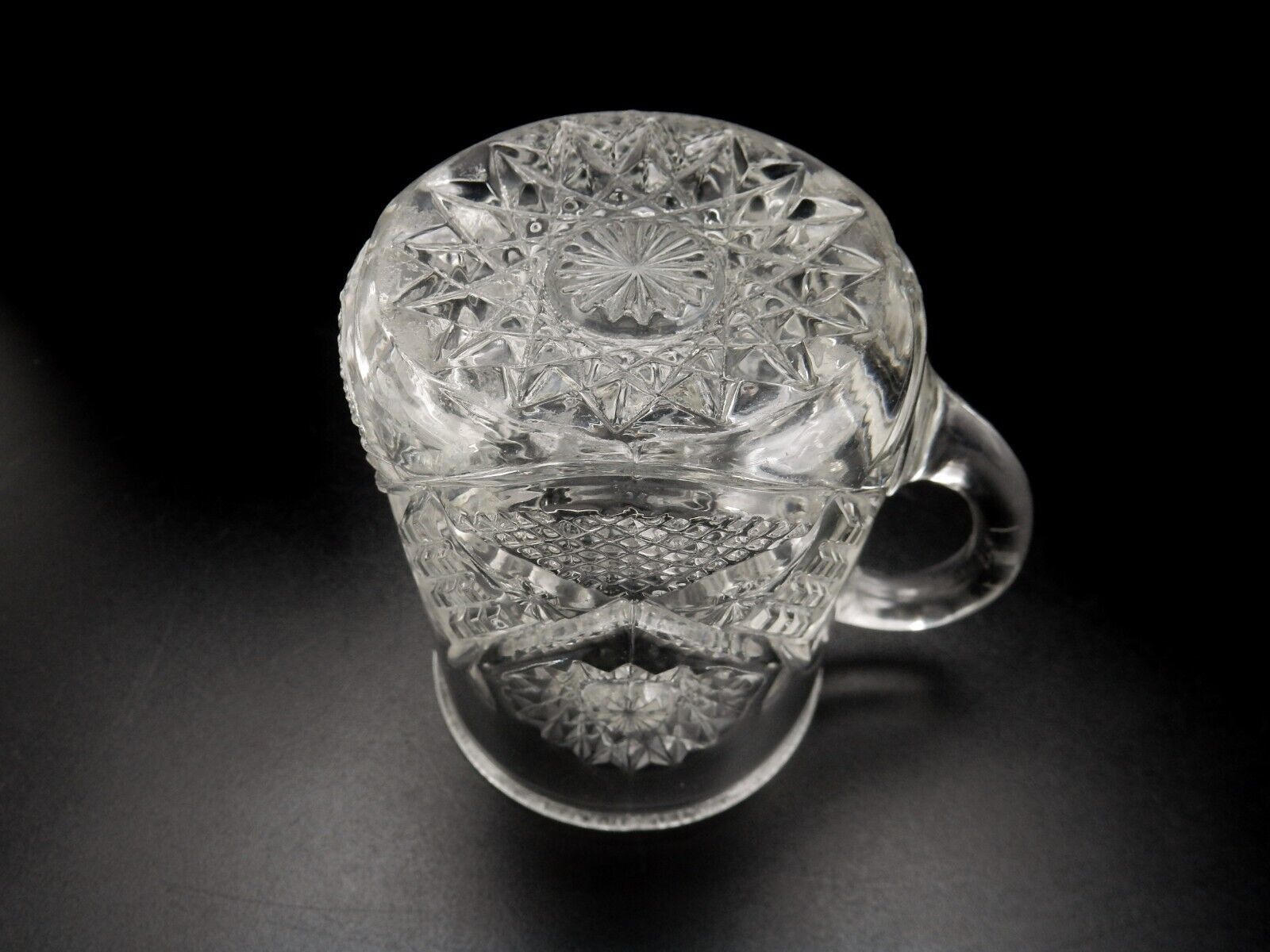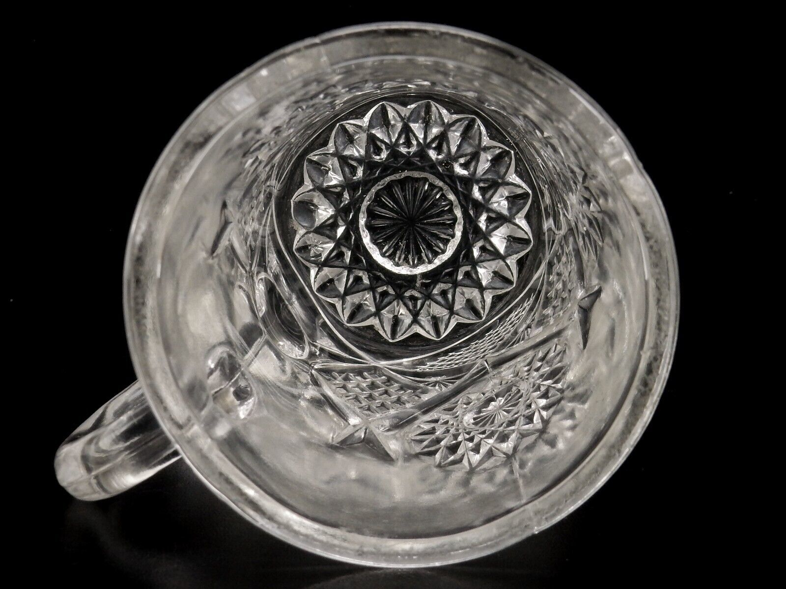 Cut Pressed Glass Vase With Ear Handle, Vintage, Diamonds & Stars, Mug Style