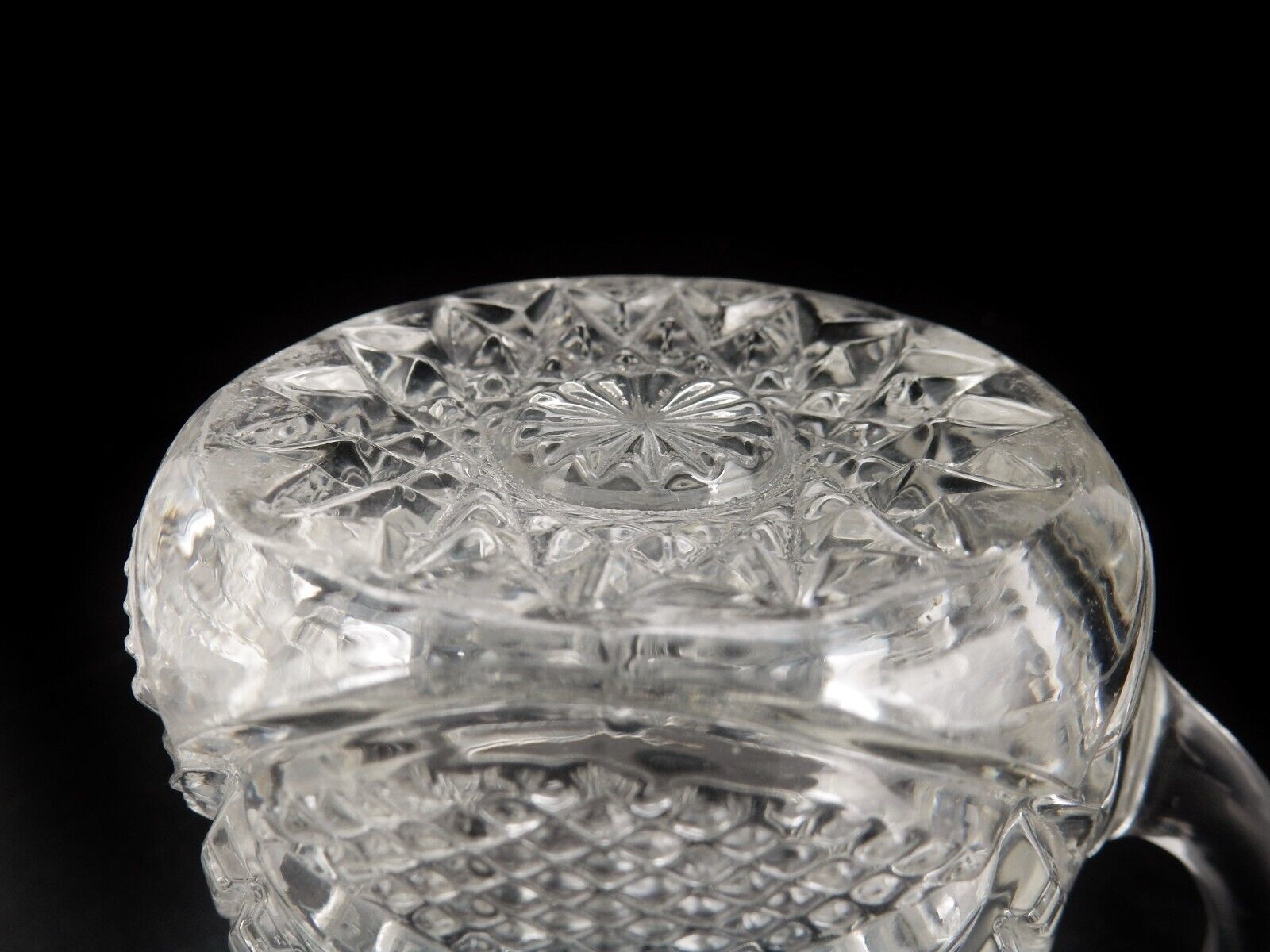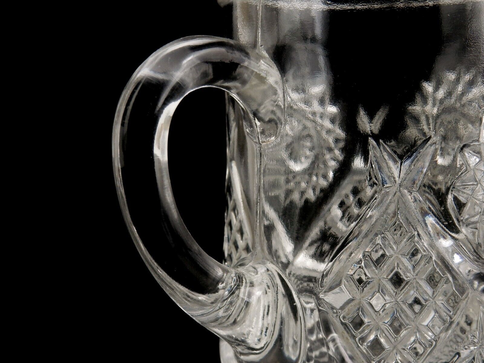 Cut Pressed Glass Vase With Ear Handle, Vintage, Diamonds Stars, Mug Style