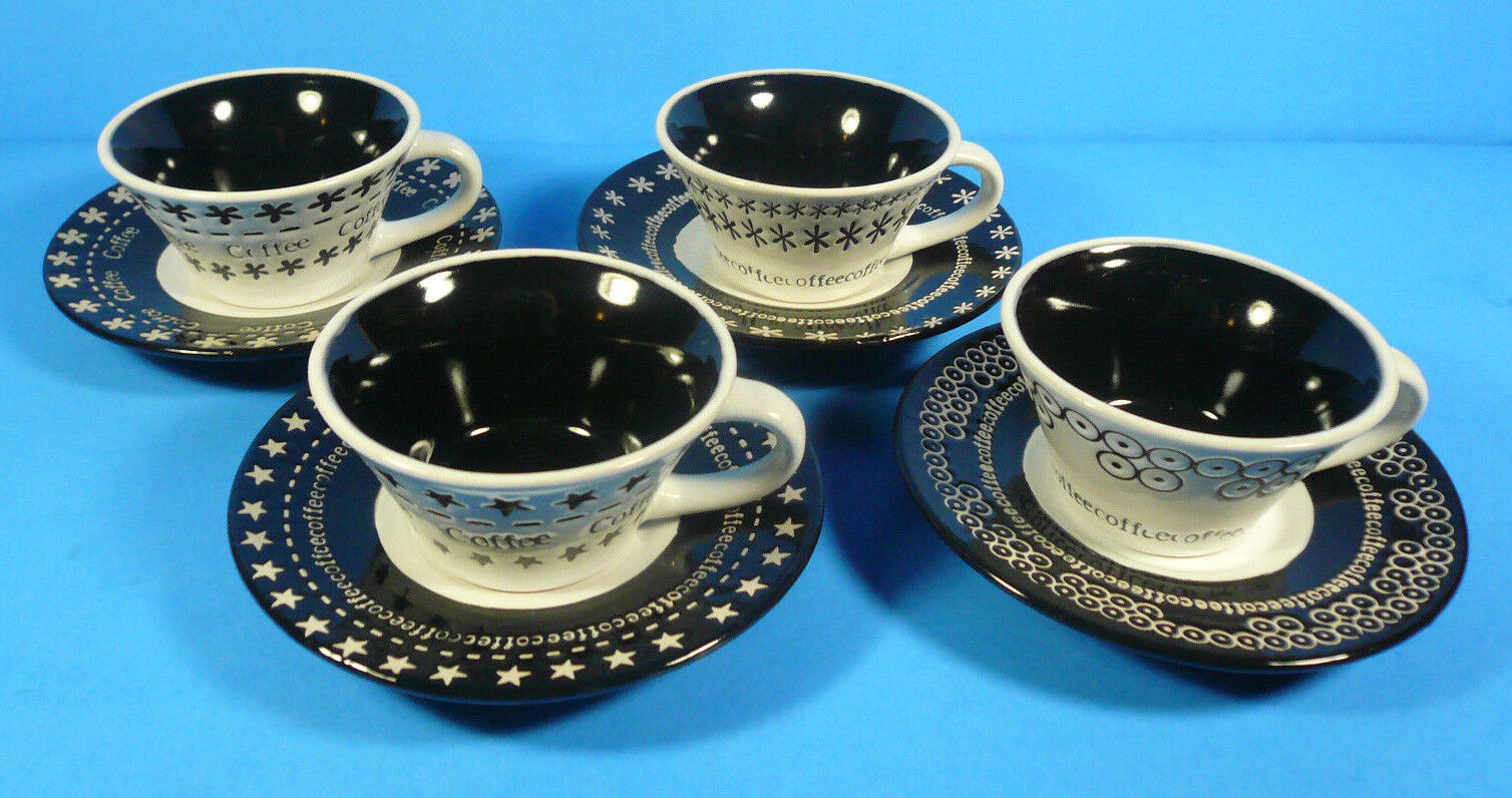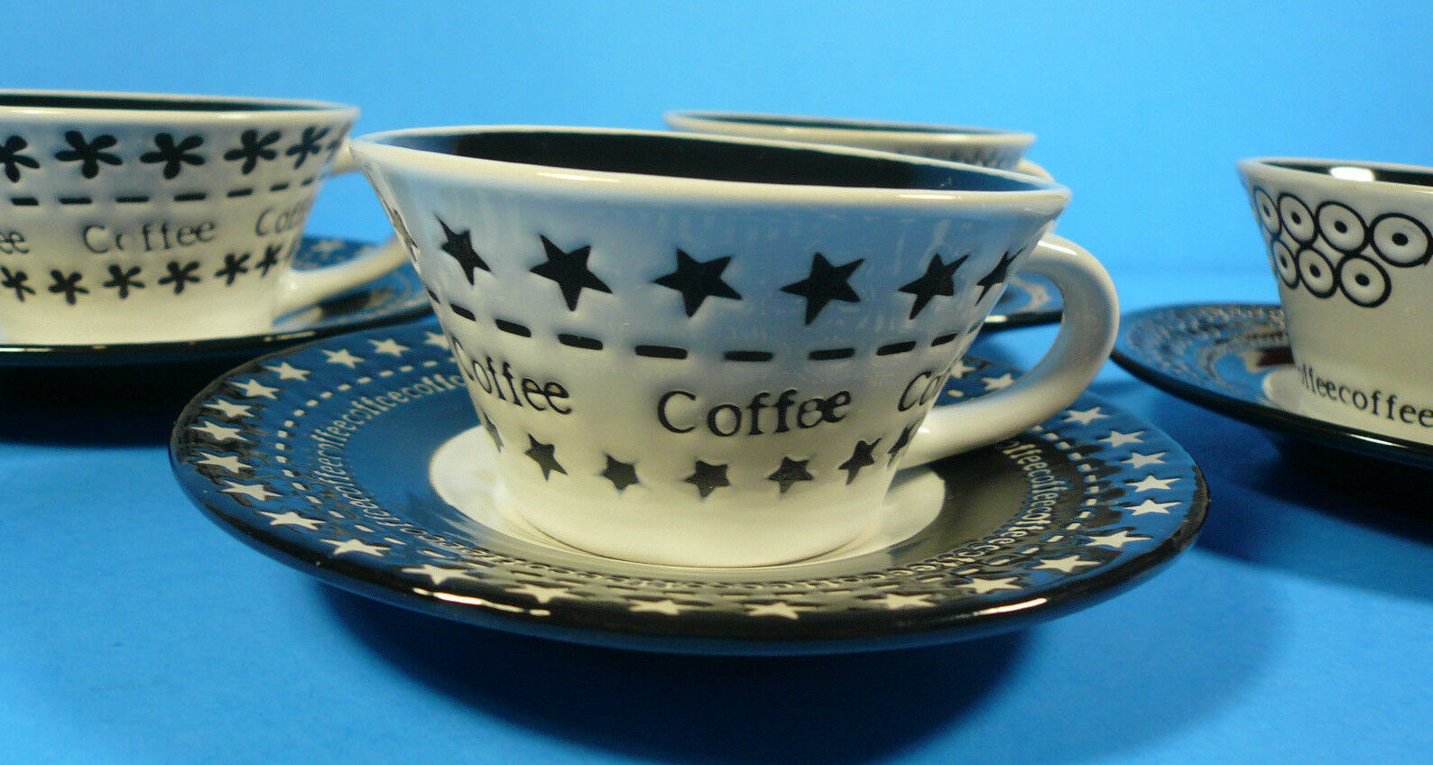 Cuisinart Madison Cafe 4 Espresso Coffee Cups & Saucers Demitasse Black White
