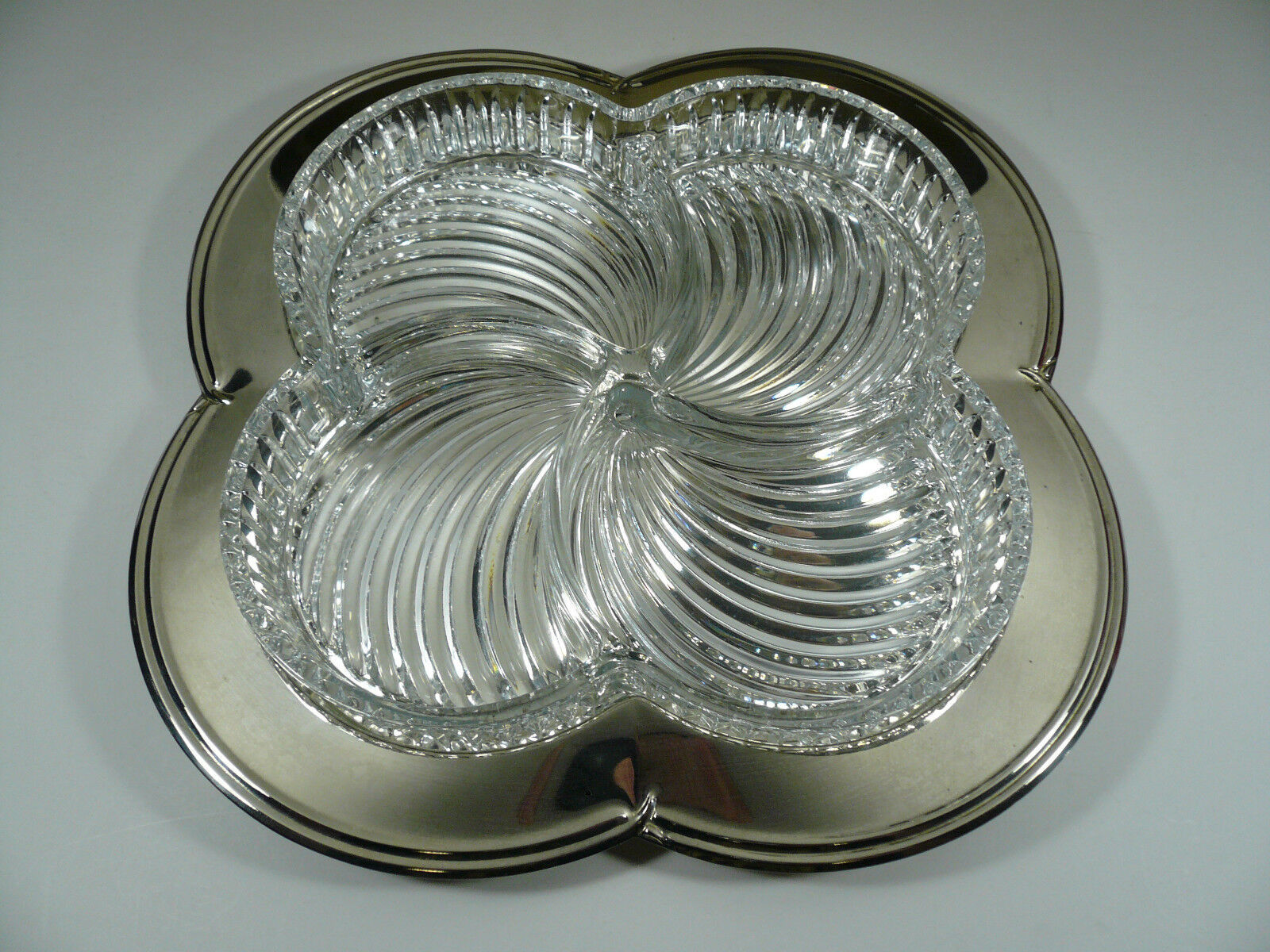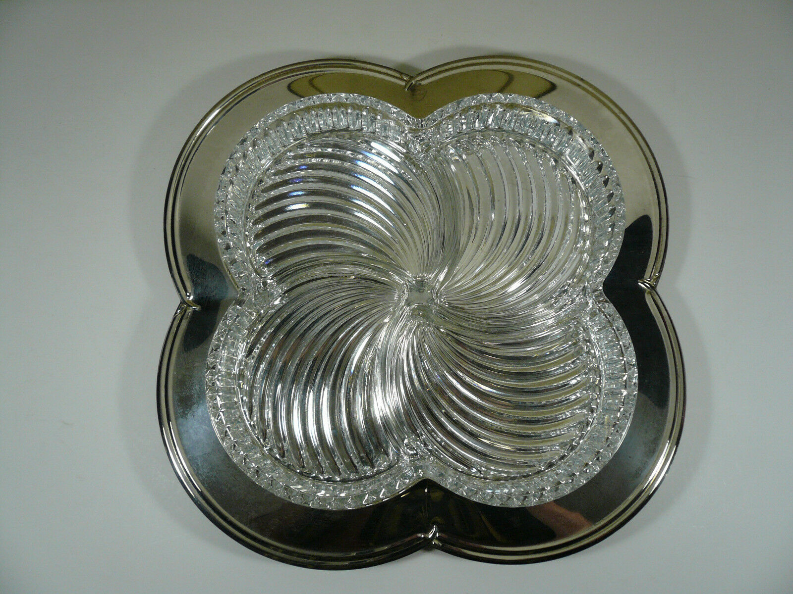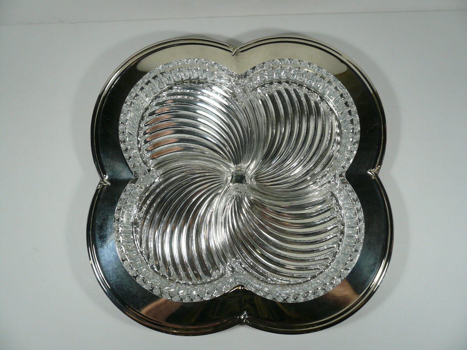 Beautiful Large Godinger Sectional Glass & Silverplate Serving Tray Platter