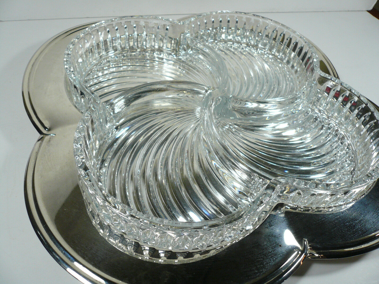 Beautiful Large Godinger Sectional Glass Silverplate Serving Tray Platter