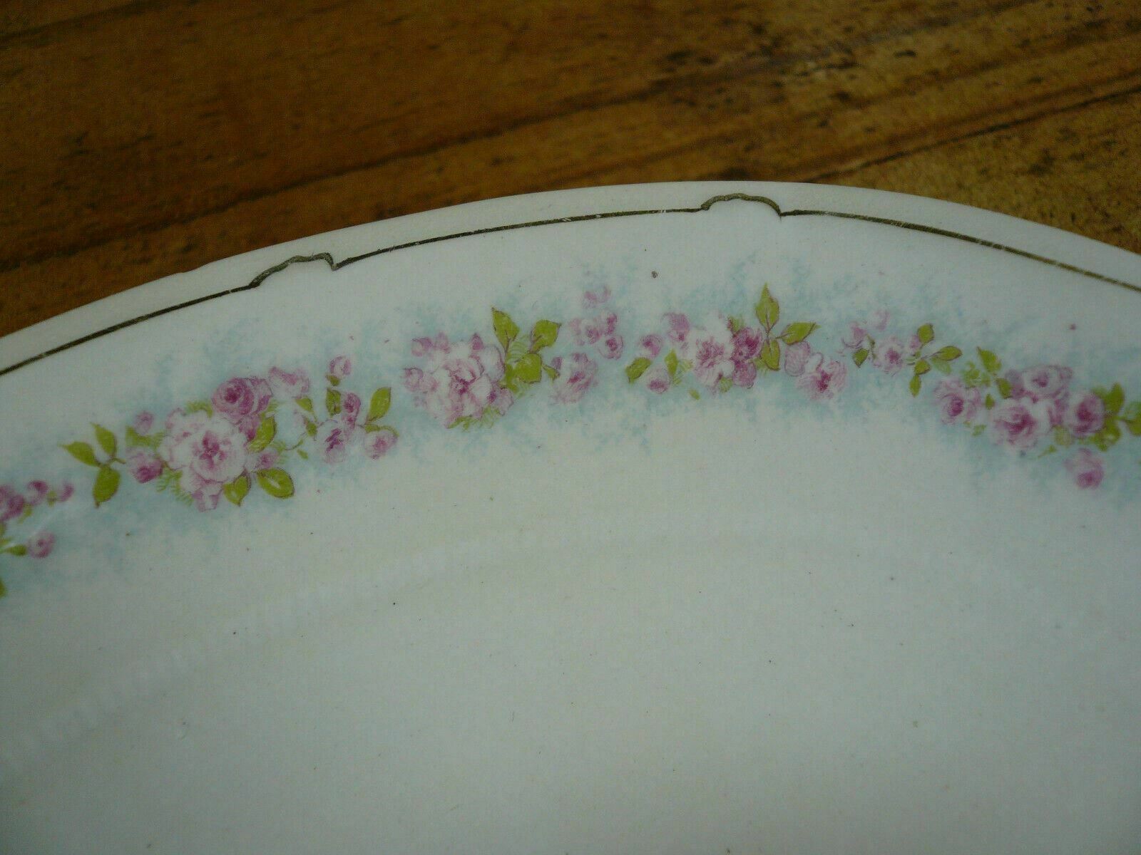 1914-1925 W H Grindley Dainty Pattern Blue Band Pink Roses Kidney Shaped Bowl