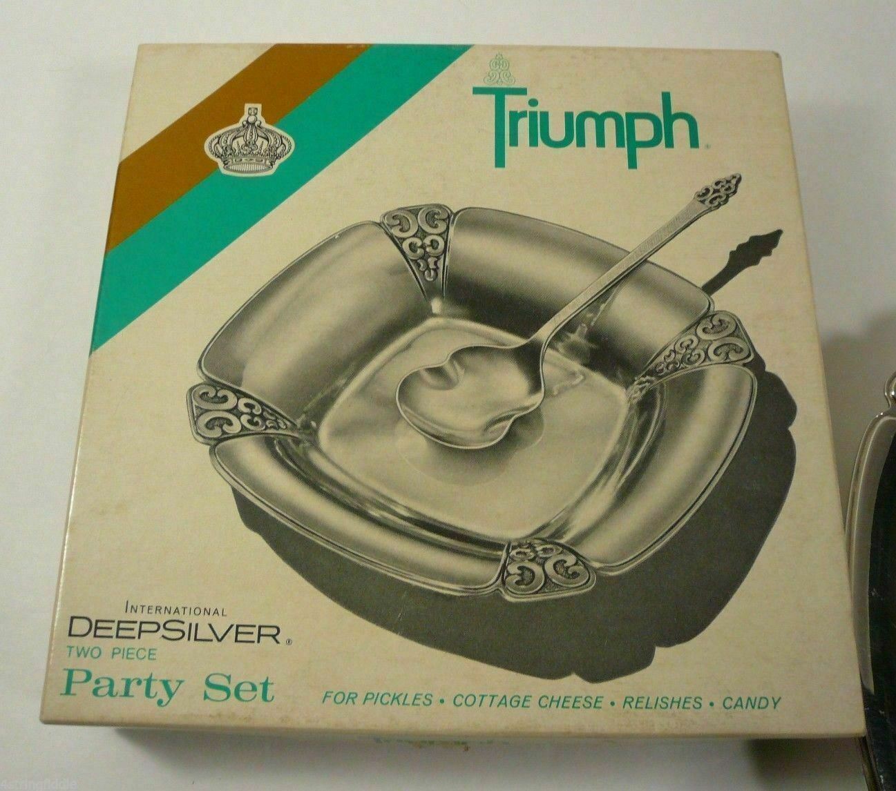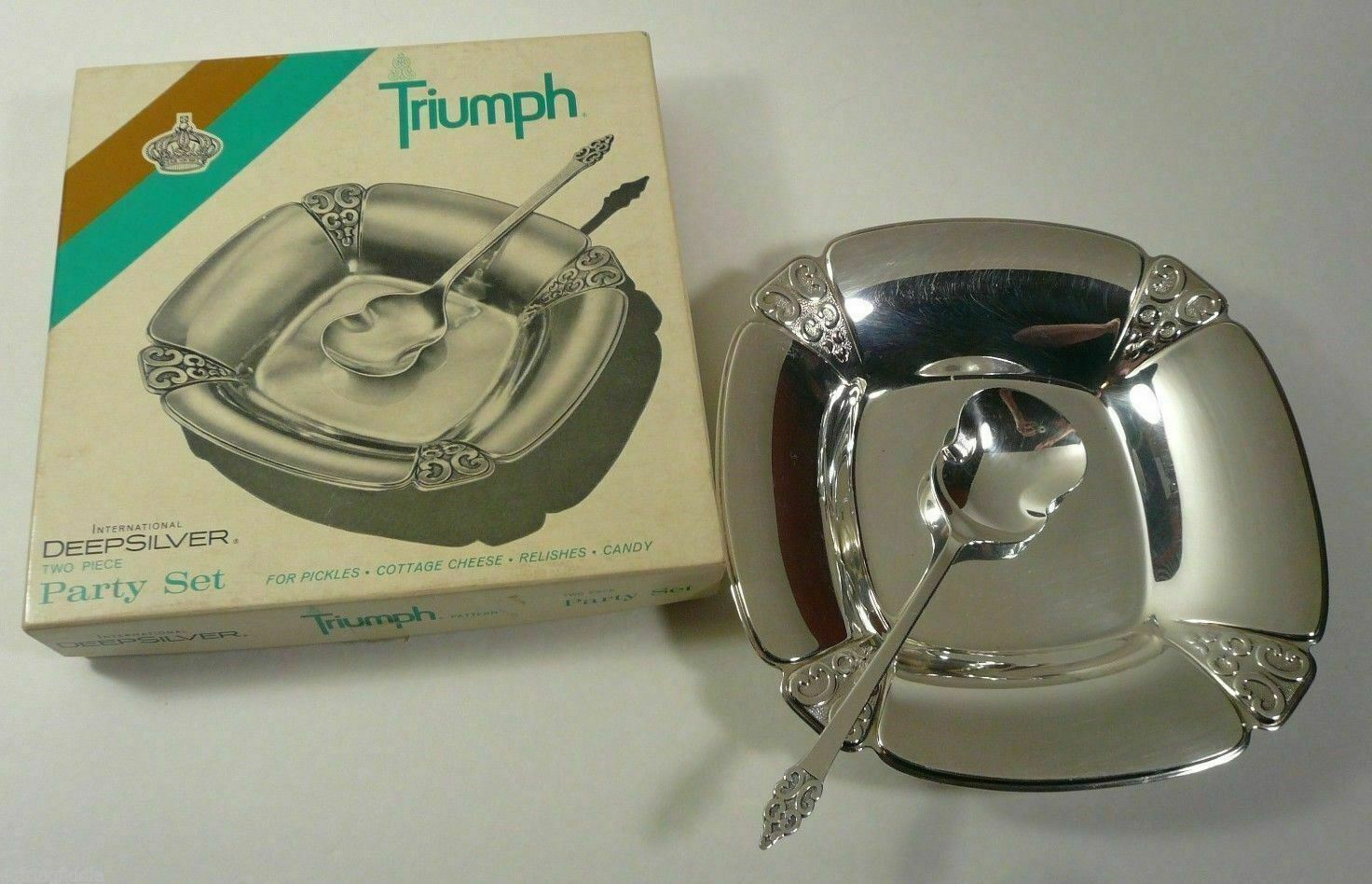 International Silver Co Candy Bon Bon Dish Tray Silver Plated with Spoon in Box