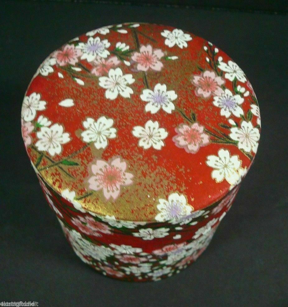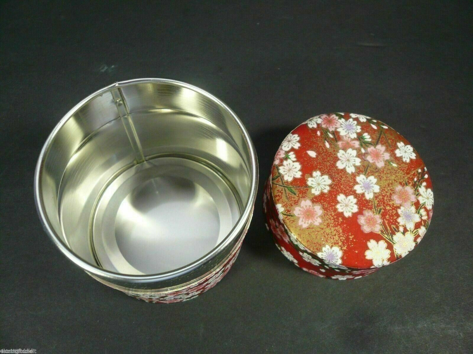 Nice Little 3" Trinket Tin White Pink Purple Flowers Red and Gold