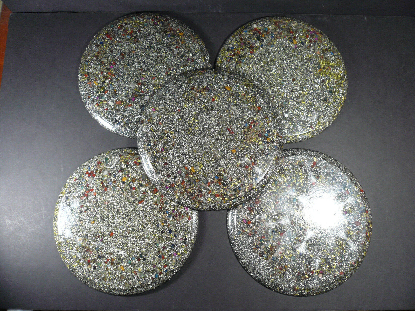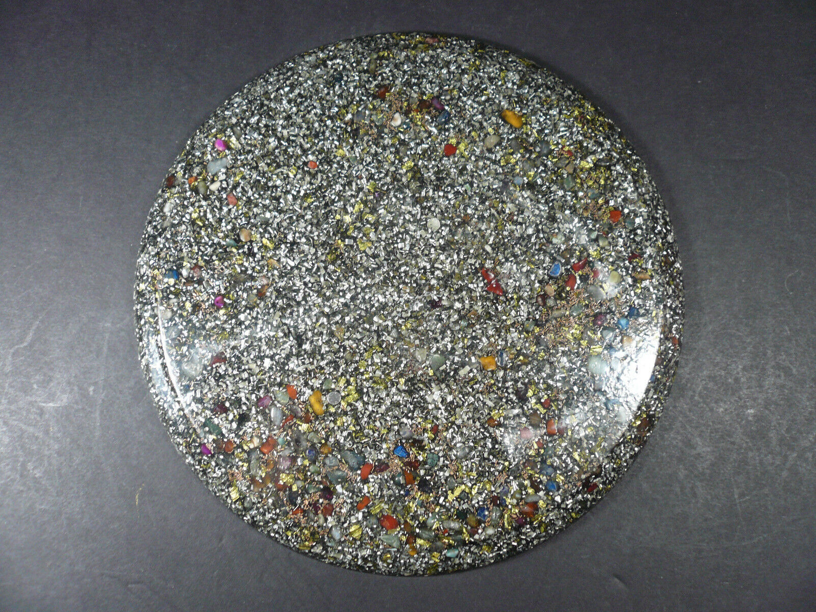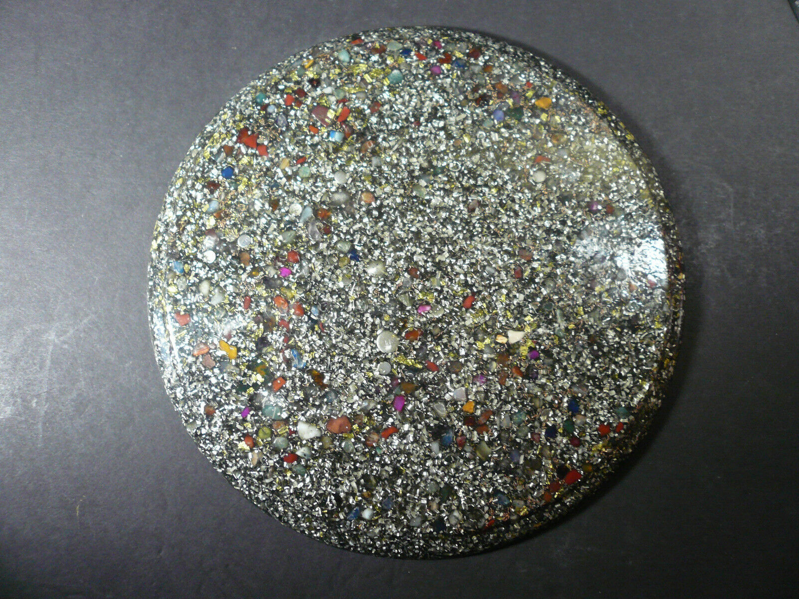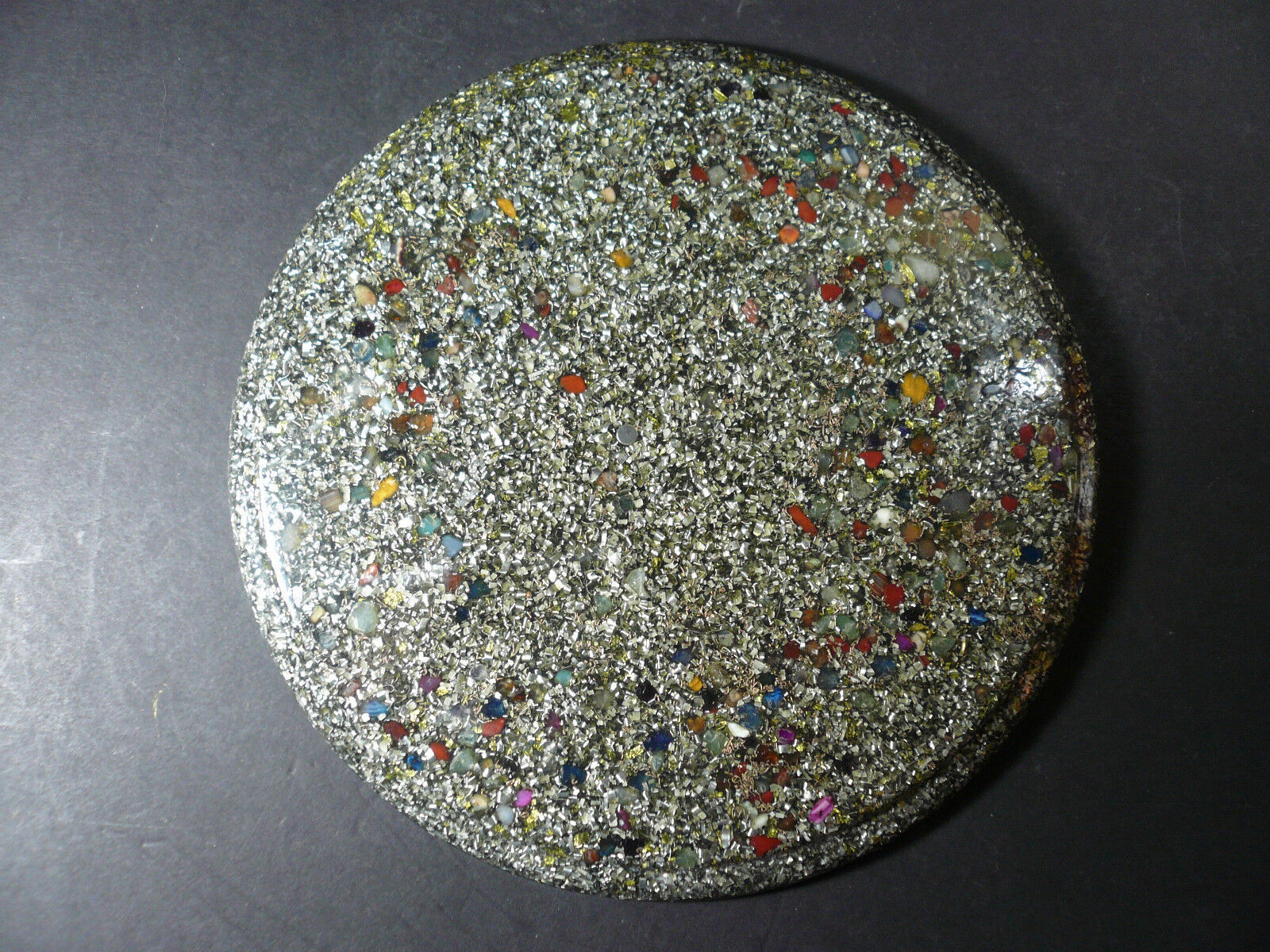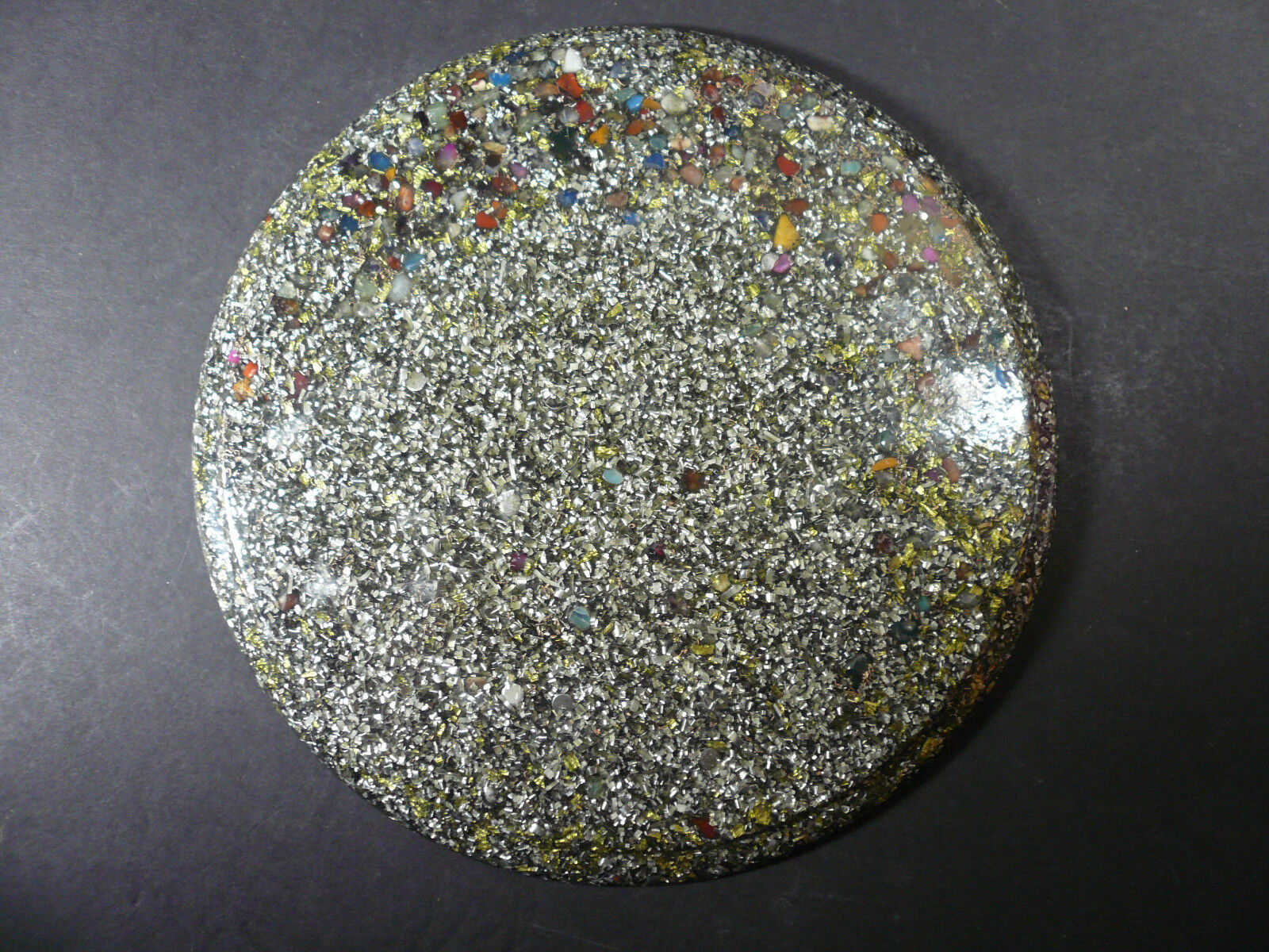 Gemstones, Agates and other metals in a black resin. They are all one of a kind and unique.