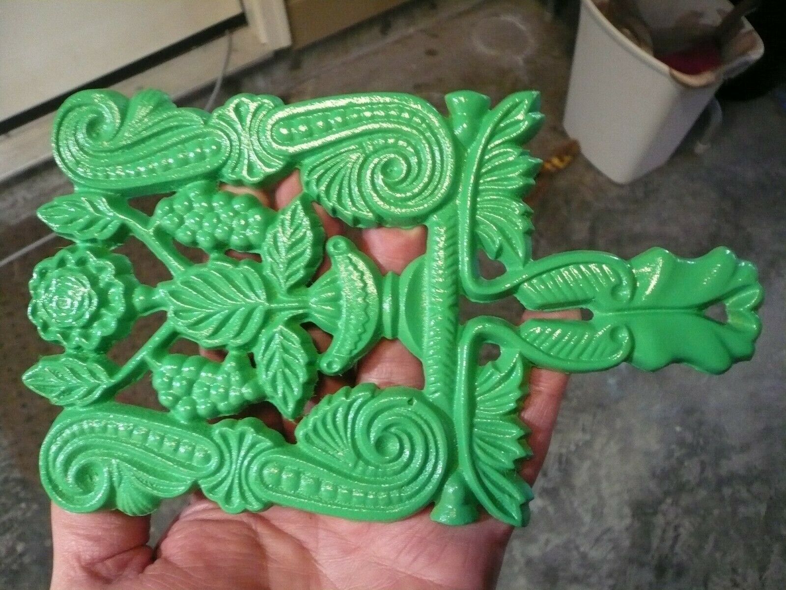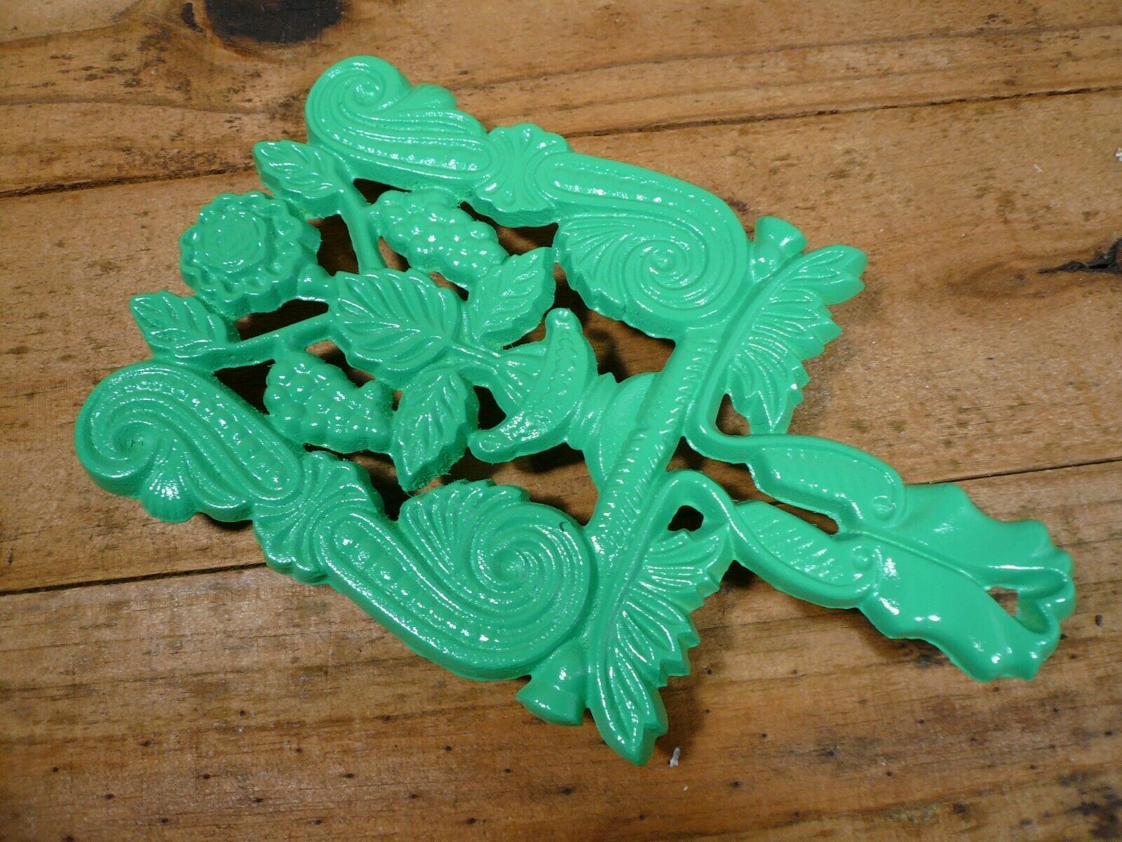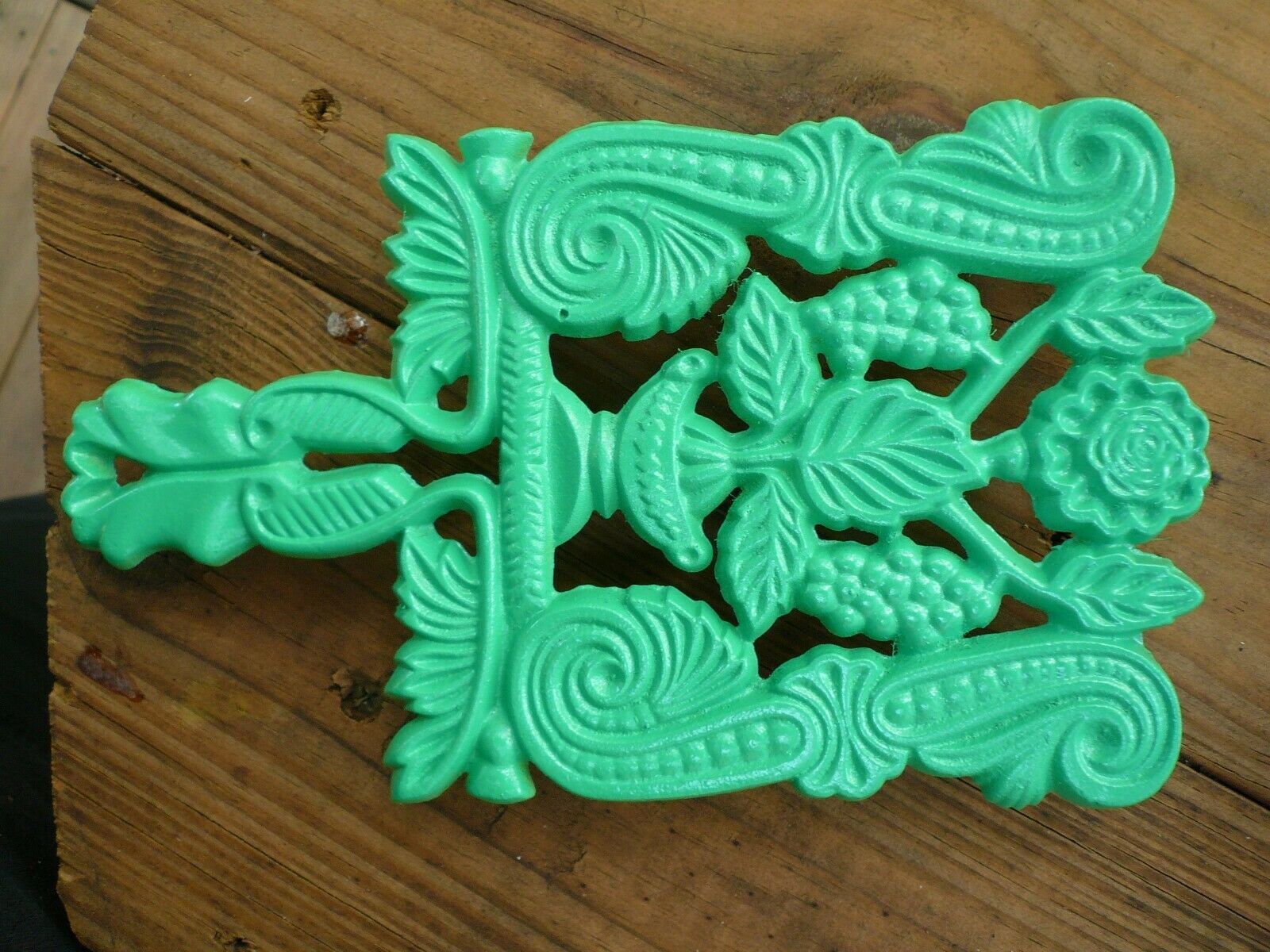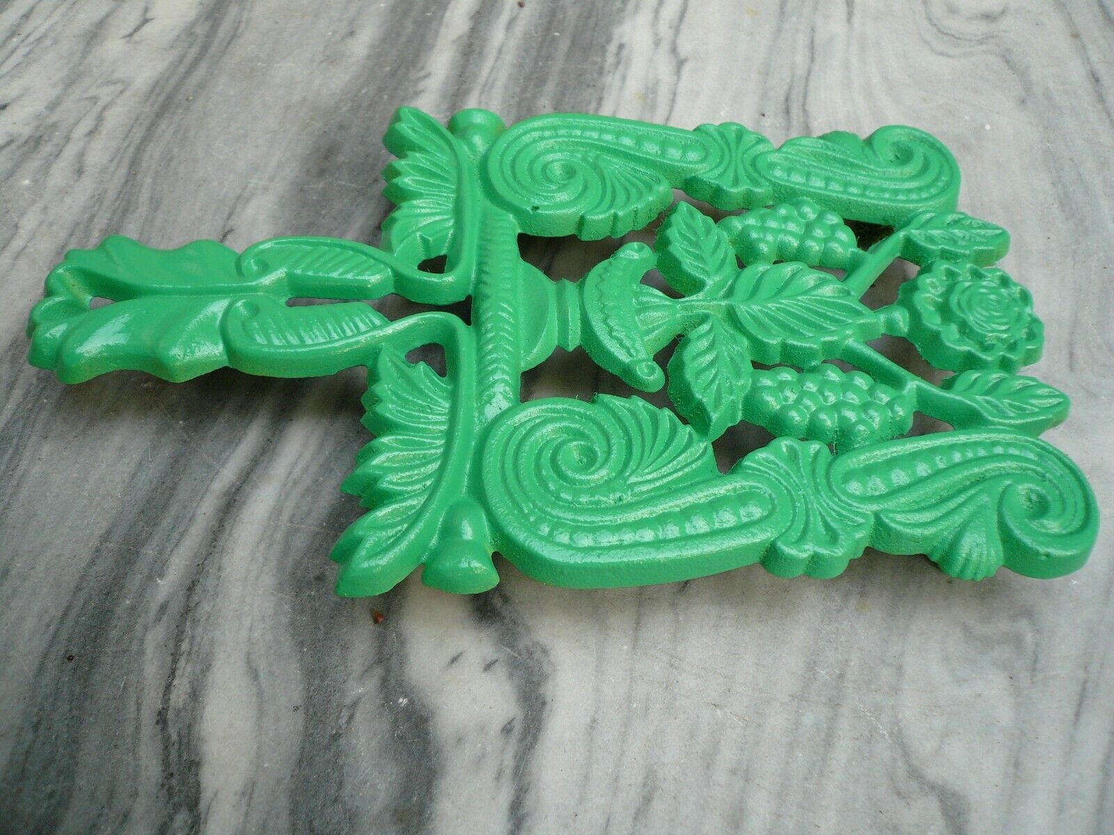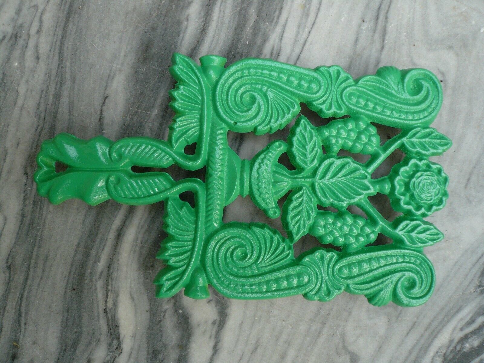 Vintage 9-2 VM Grape Design Cast Iron Footed Kitchen Trivet Painted Spring Green