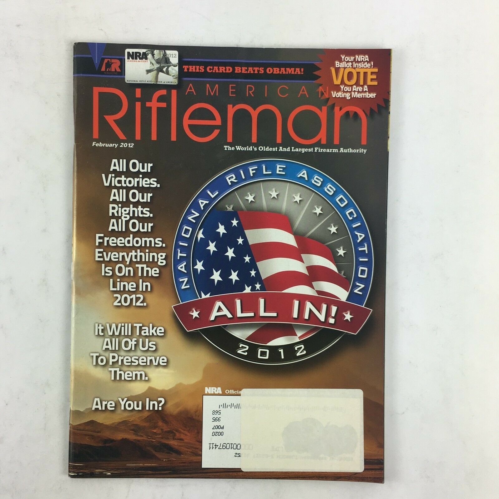 -Featuring: February 2012 American Rifleman Magazine National Rifle Association All in 2012 -Magazine is complete and in nice condition -Showing only light to moderate wear