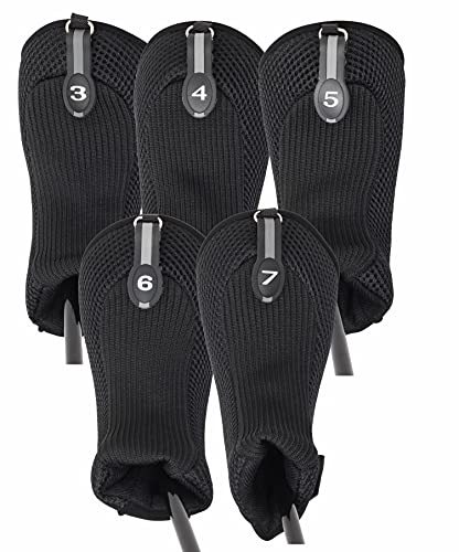 Black All Hybrid Headcover Set 3 4 5 6 7 Golf Club Covers Head Cover Mesh 3-7 Co