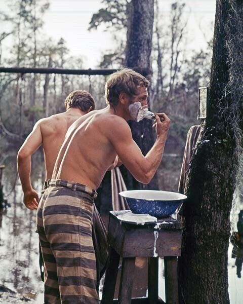 Steve McQueen in prison garb shaving in woods 1966 Nevada Smith 8x10 photo
