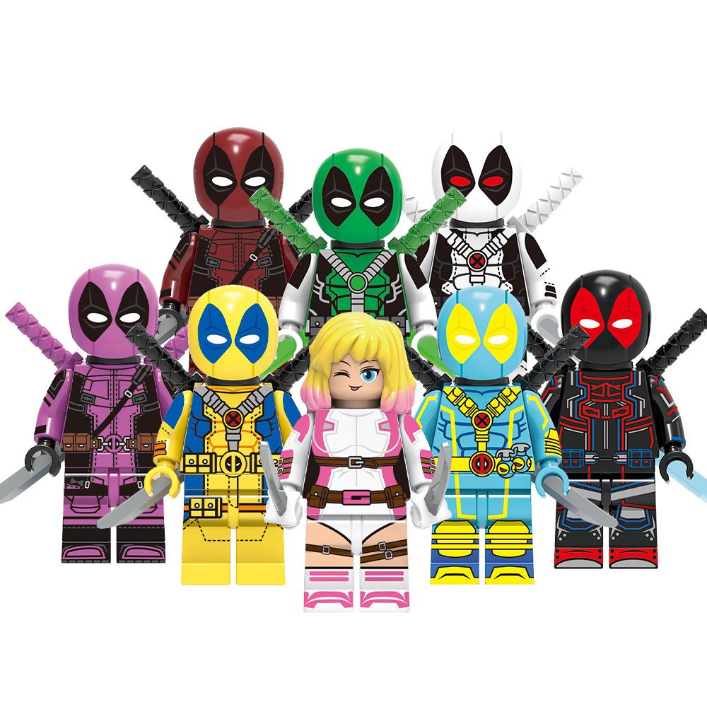 8pcs Various Deadpool and Gwenpool Green Pink Deadpool X-Men X-Force Minifigures