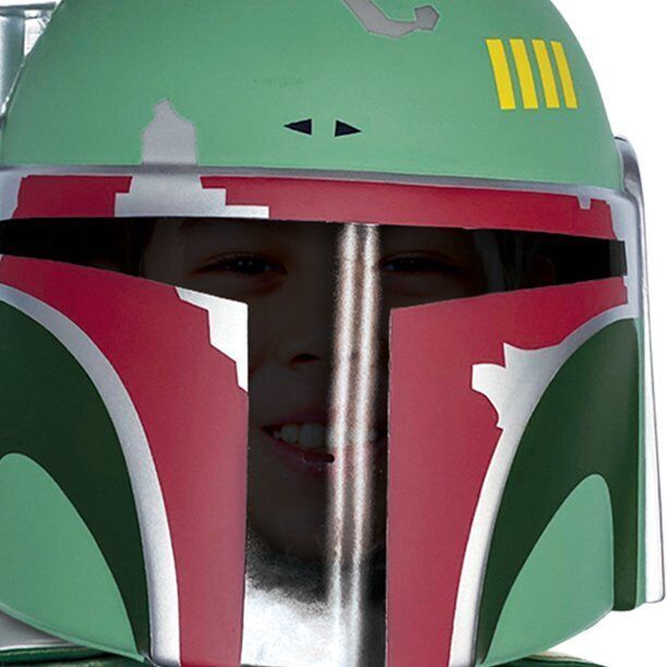 Become your favorite Star Wars bounty hunter this Halloween in our awesome Boba Fett Lego Child costume! This costume features a structured foam bodice with cool and colorful sublimated art across the front. It comes with a dimensional half mask with a translucent, black visor built-in. It also includes a pair of foam hands that are shaped just like LEGOs. This is the perfect costume for anyone who is into LEGOs and Star Wars. Just add your own pants and shoes and you're ready to go! Don't miss out on this awesome costume!