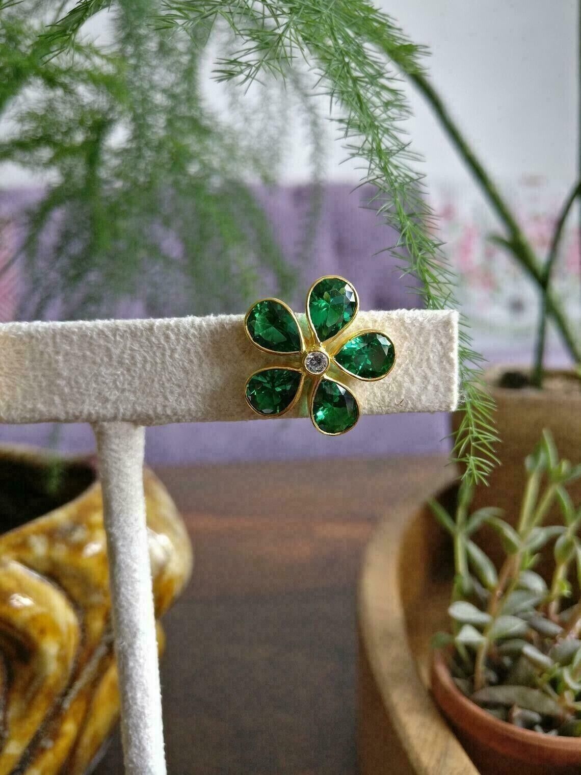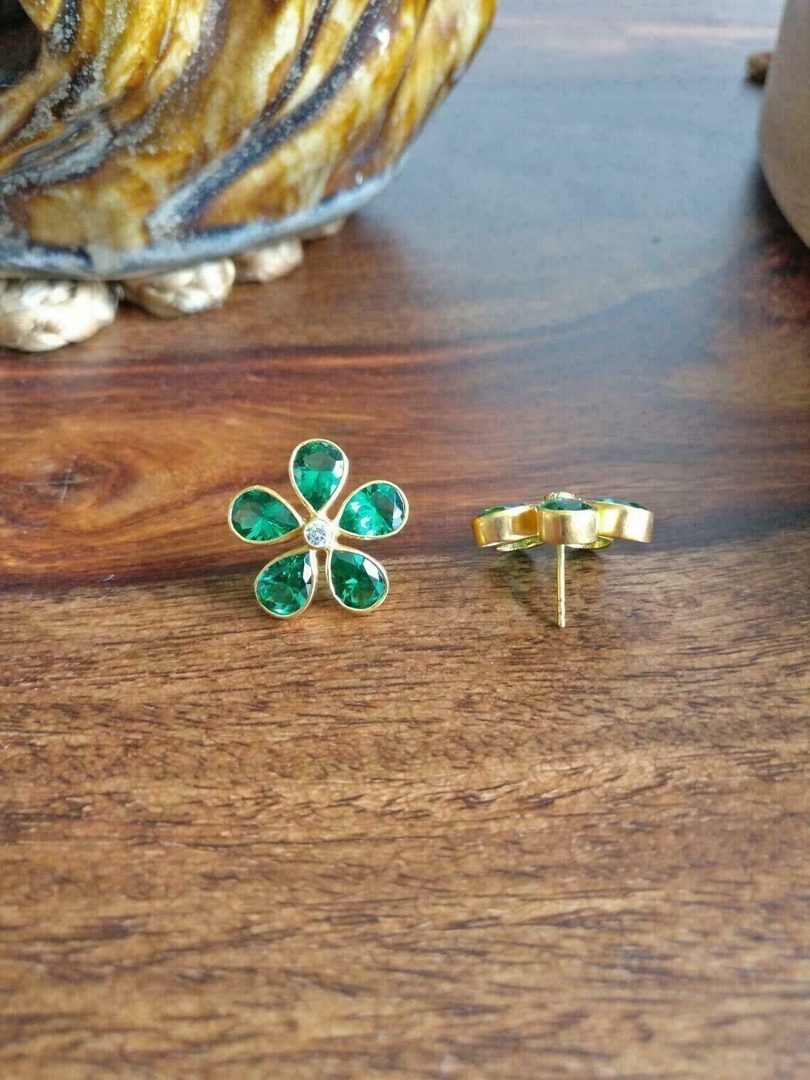 Orecchini a perno a forma di fiore verde smeraldo con taglio a pera 3CT CZ...