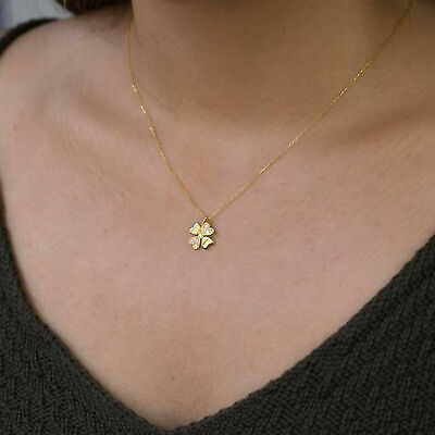 Collana con ciondolo con ciondolo a forma di trifoglio con foglia di...