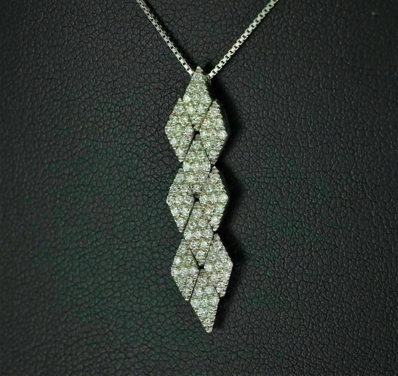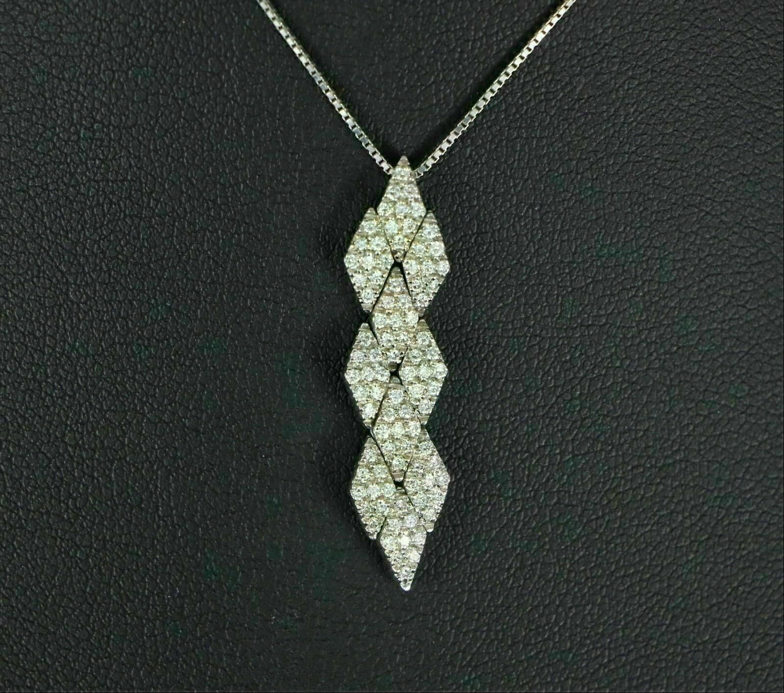 Collana con ciondolo pendente 18" con finitura in oro bianco 14 carati con...