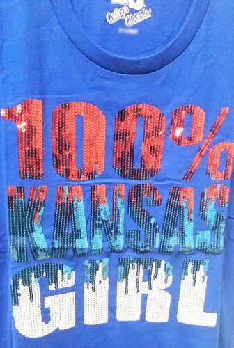 Kansas Jayhawks 100% Fille Graphisme Chemise Avec Paillette Bling , Bleu, Moyen