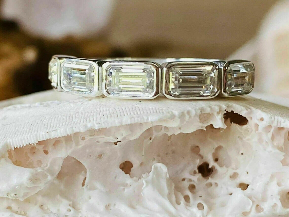 2 Karat Smaragdschliff VVS1 Diamant Halbe Ewigkeit Verlobungsring 14 Karat...