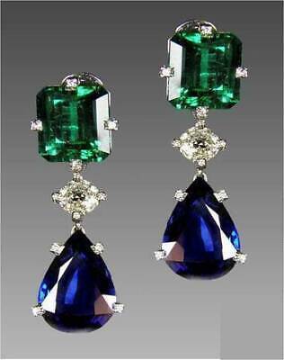 Aretes colgantes de diamante y esmeralda con zafiro pera de 6 quilates...